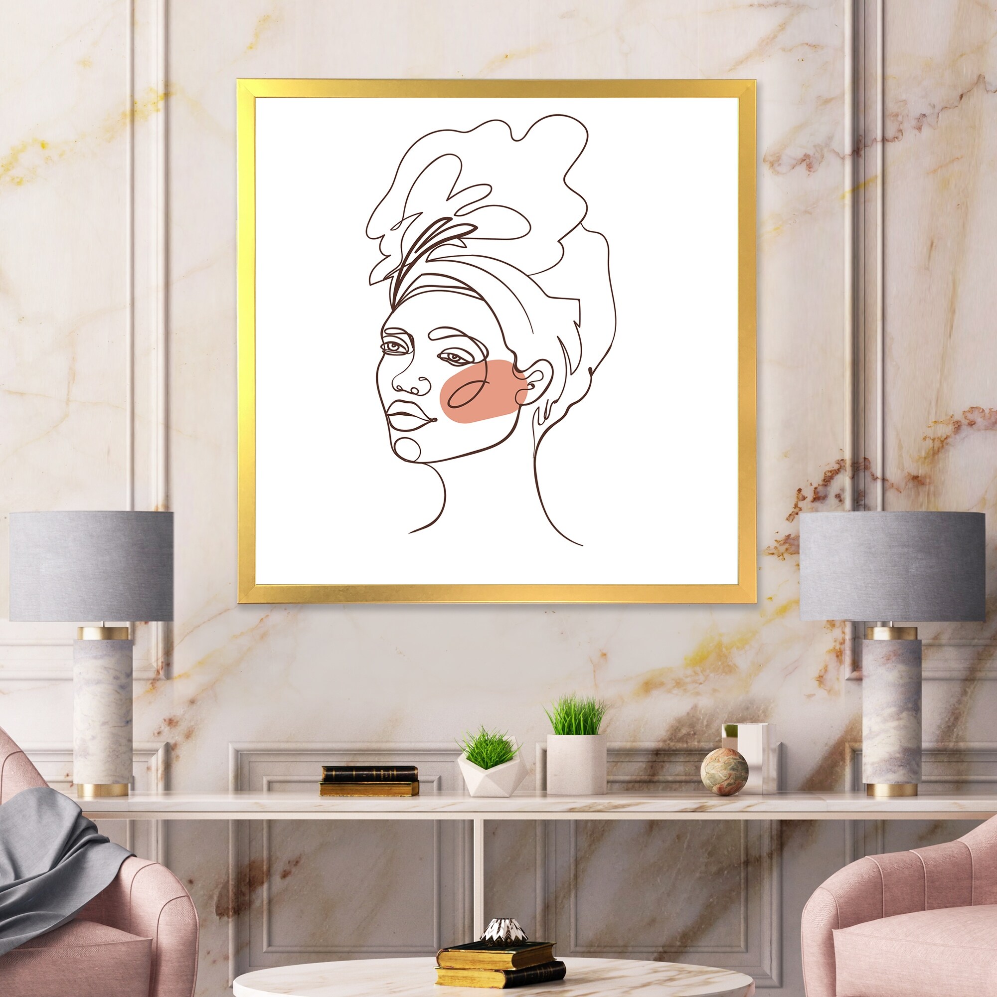 Designart "One Line Portrait of African American Woman III" Modern Framed Art Print