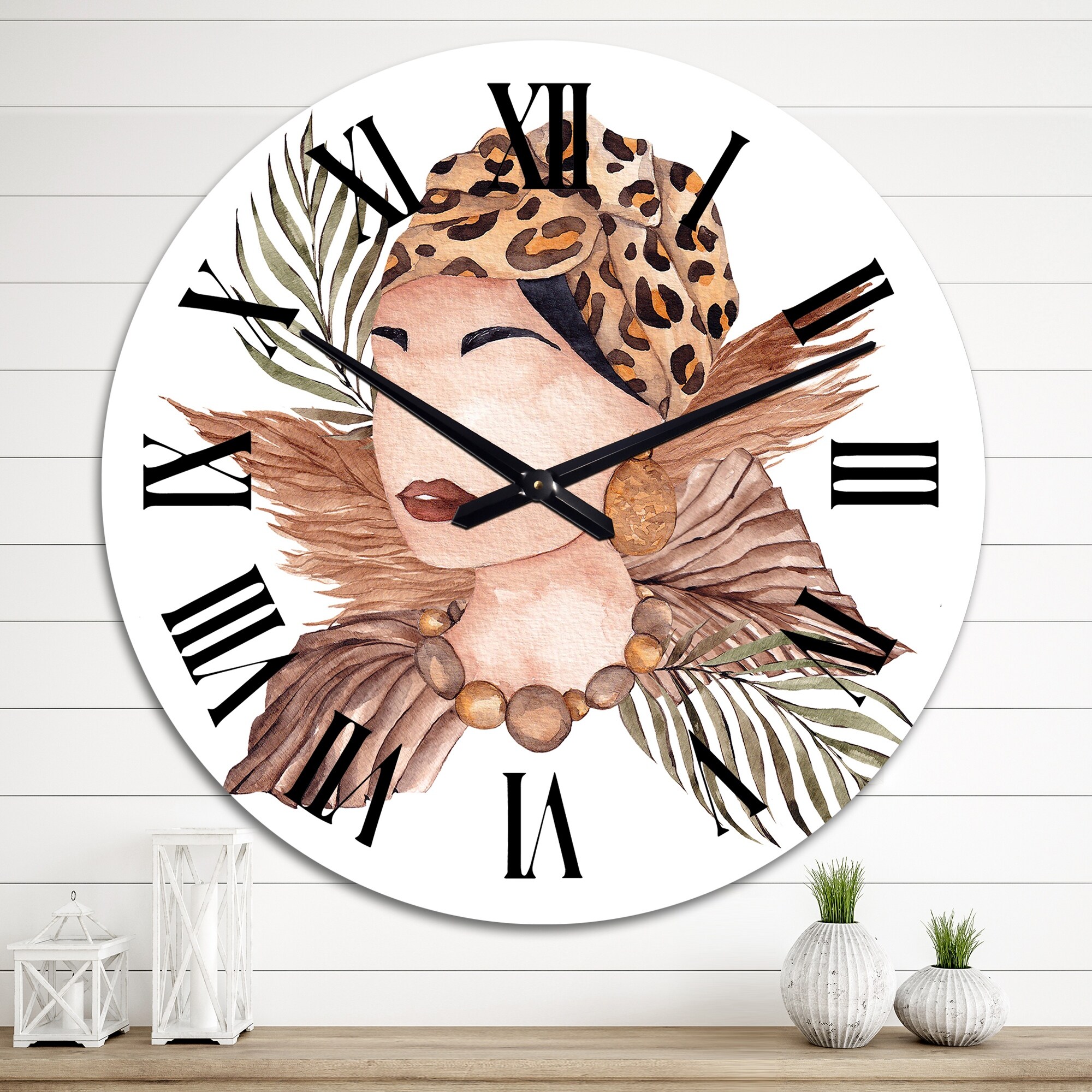 Designart 'African American Woman, Dried Flowers, Leaves II' Glam wall clock