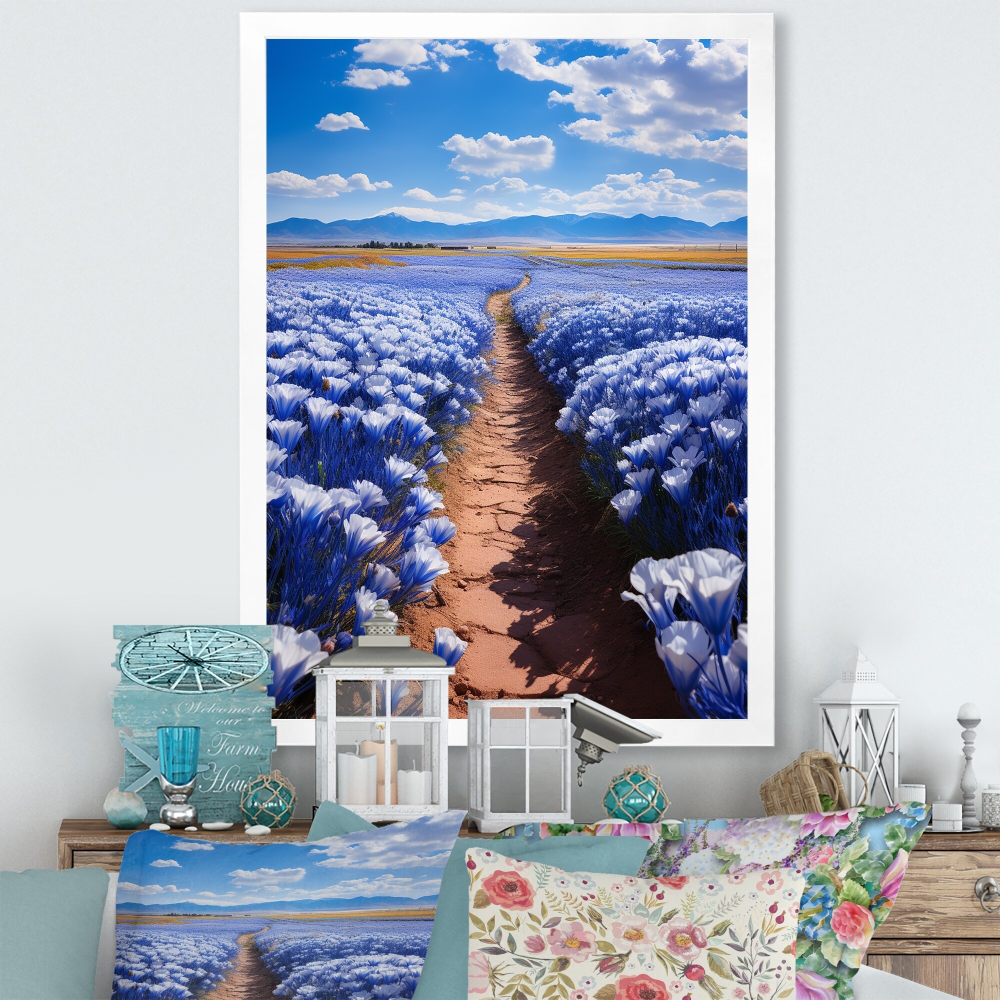 Designart "Blue Flowers Meadows Road" Road Framed Canvas Art Print