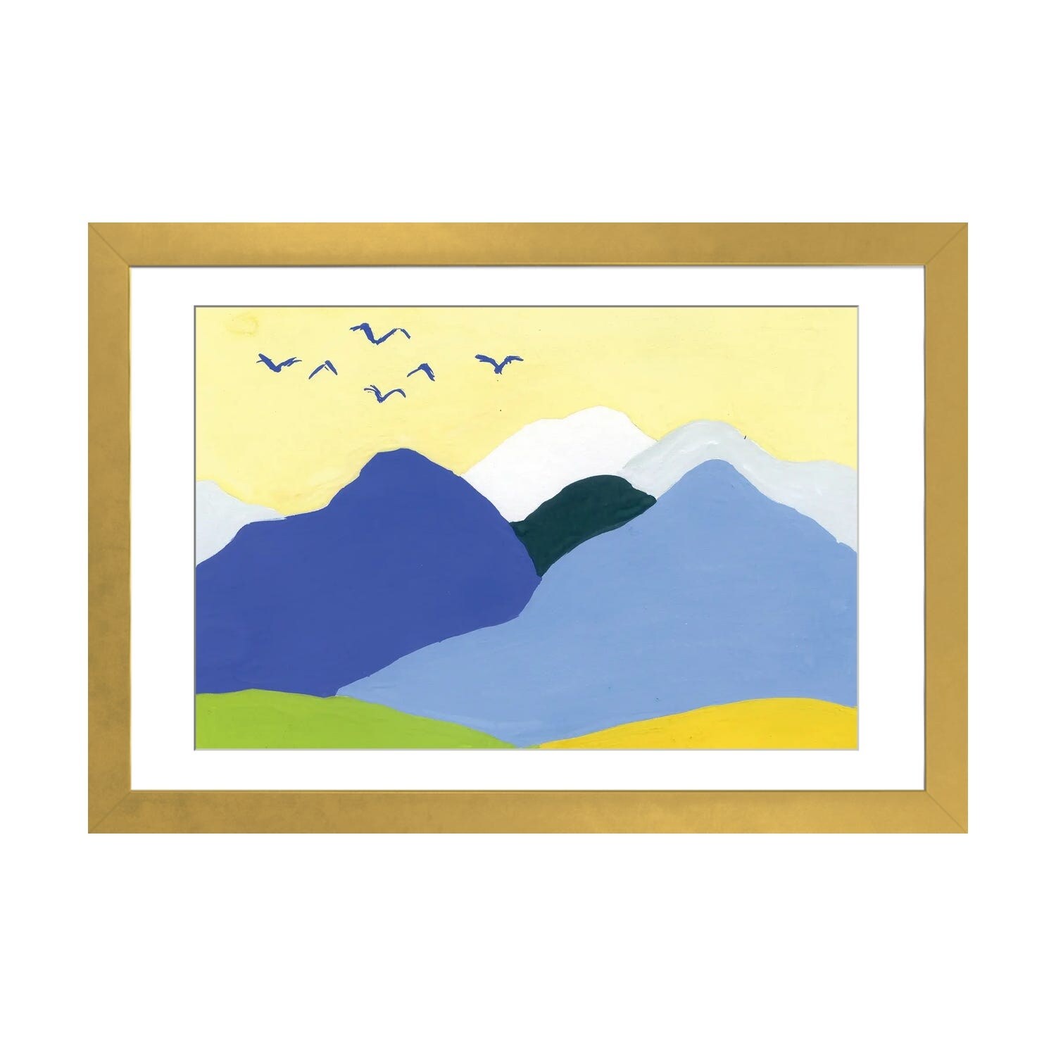 iCanvas "Landscape, Mountains And Birds in Blue And Yellow" by Andrea Kosar