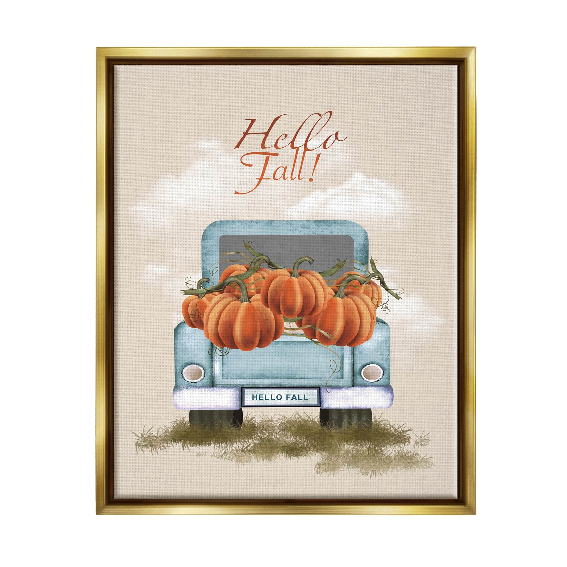 Stupell Industries Hello Fall Seasonal Autumn Pumpkins Floater Canvas Wall Art by Andrea Jasid Grassi