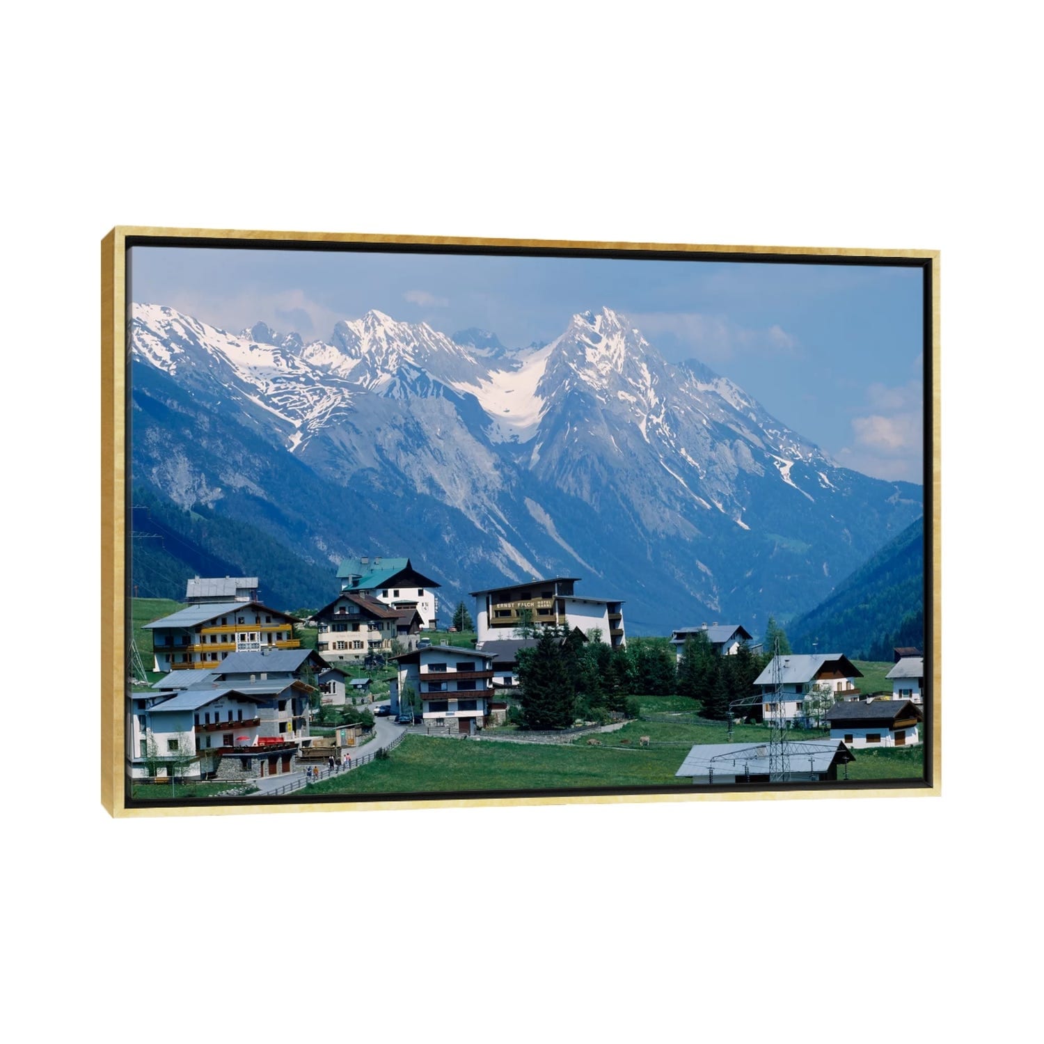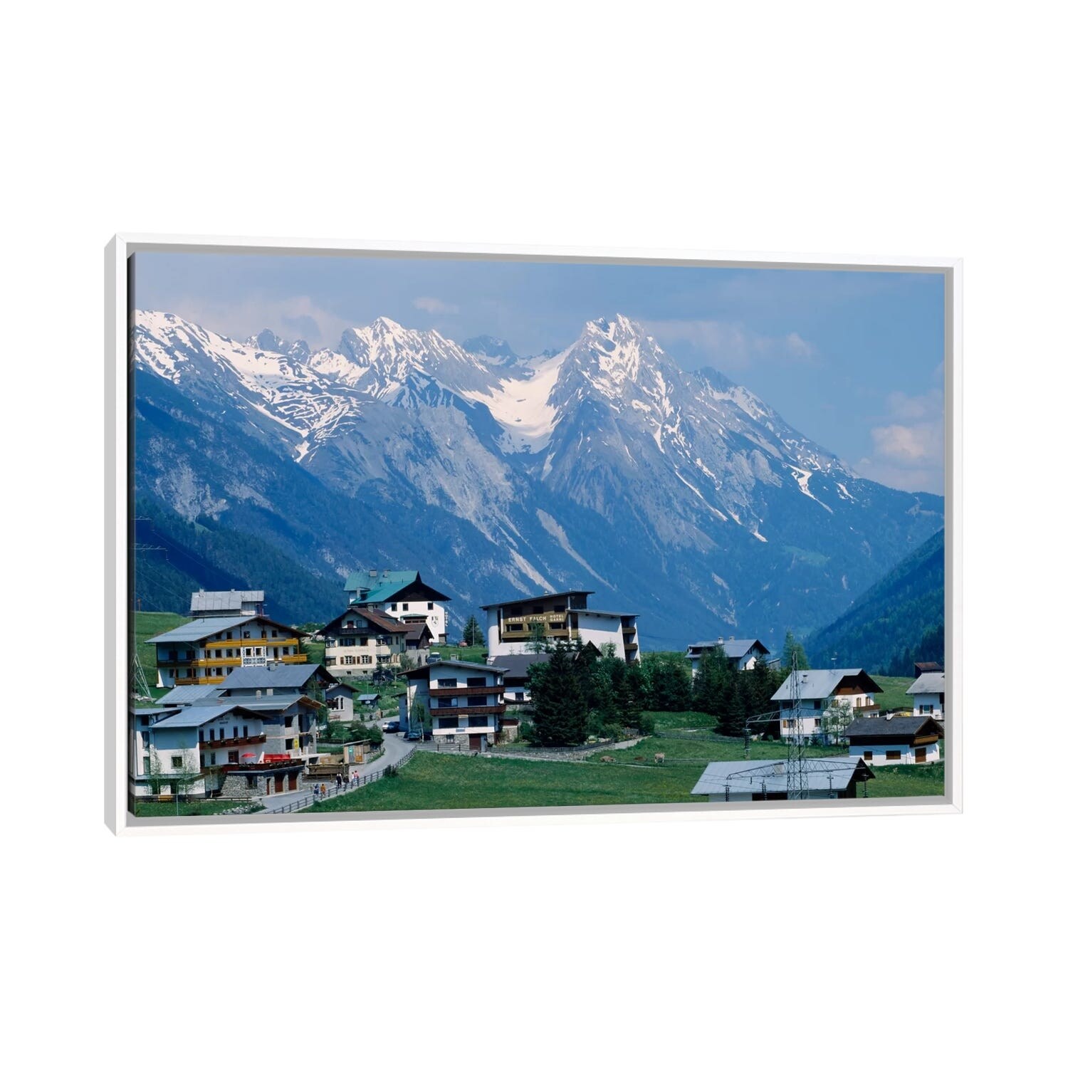 iCanvas "High angle view of a village on a landscape and a mountain range in the back" by Panoramic Images Framed Canvas Print