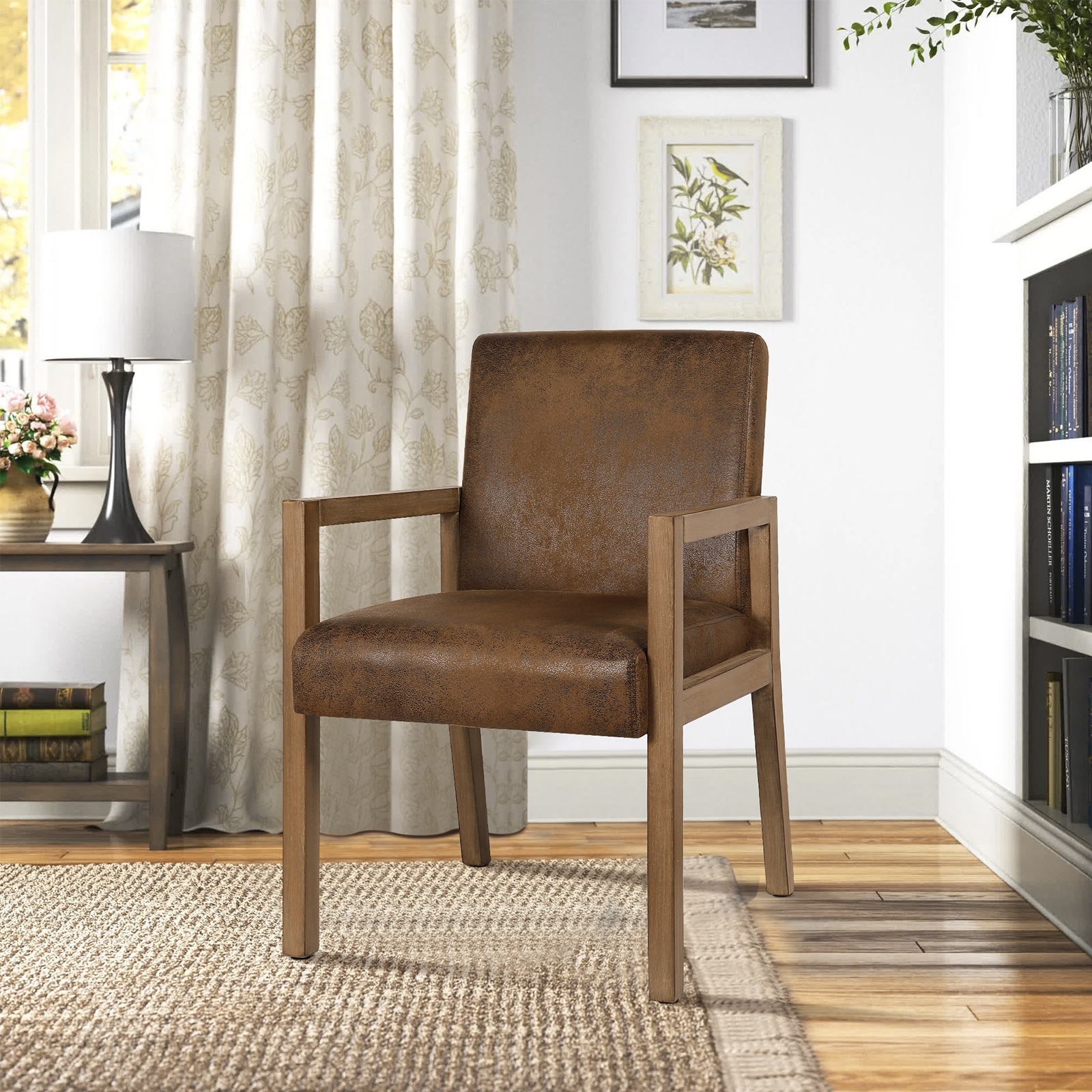 Vintage Upholstered Mid-Back Accent Chair with Armrest Distressed Side Chair, Brown - N/A