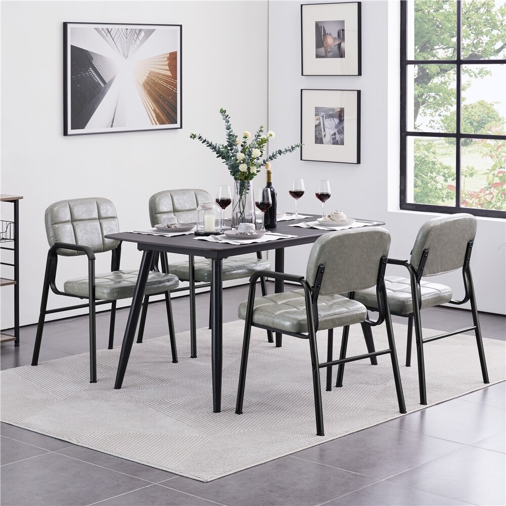 Yaheetech 2pcs Upholstered Leather Chairs with Armrest & Metal Frame
