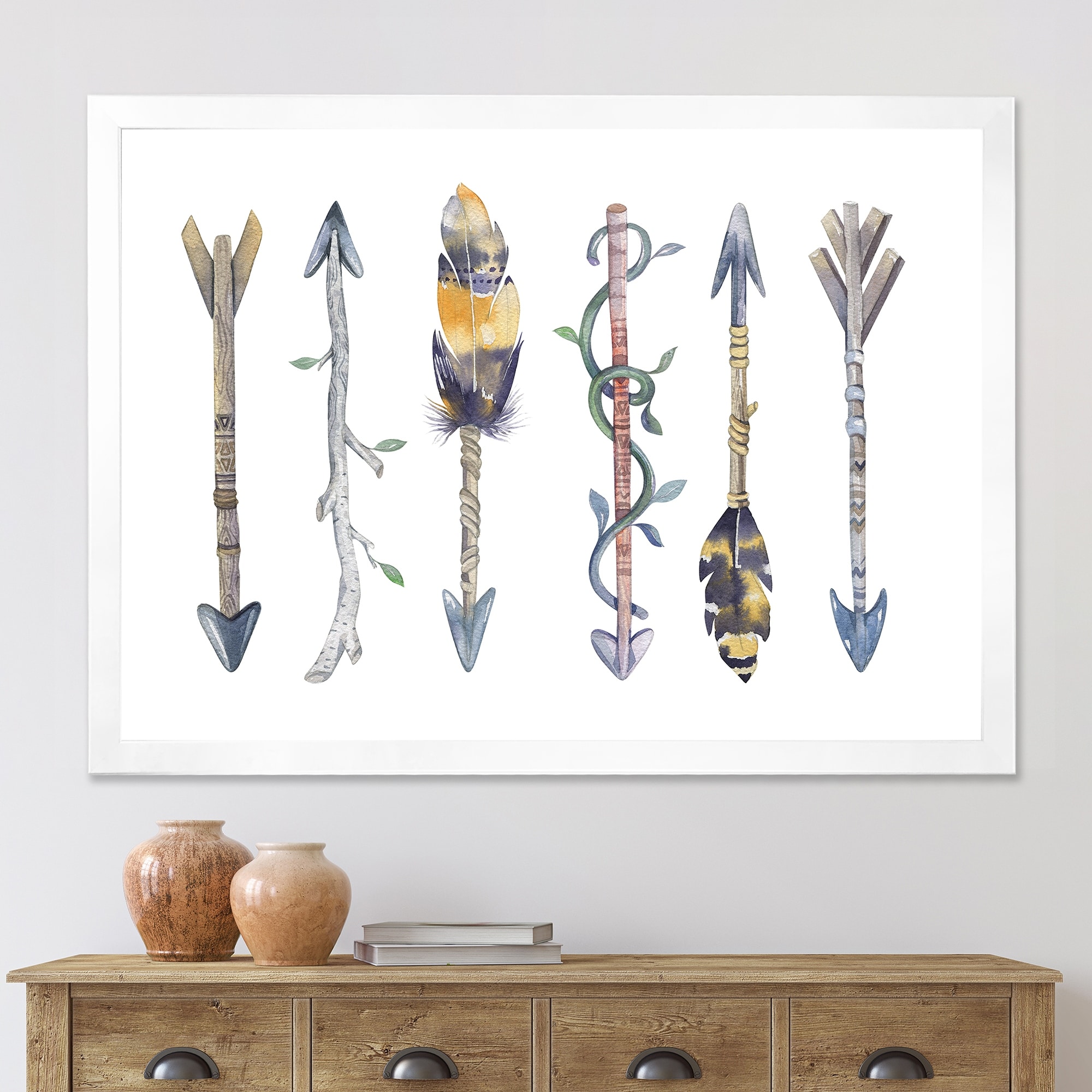 Designart "Colorful Ethnics Arrows in Native American Style" Bohemian & Eclectic Framed Art Print