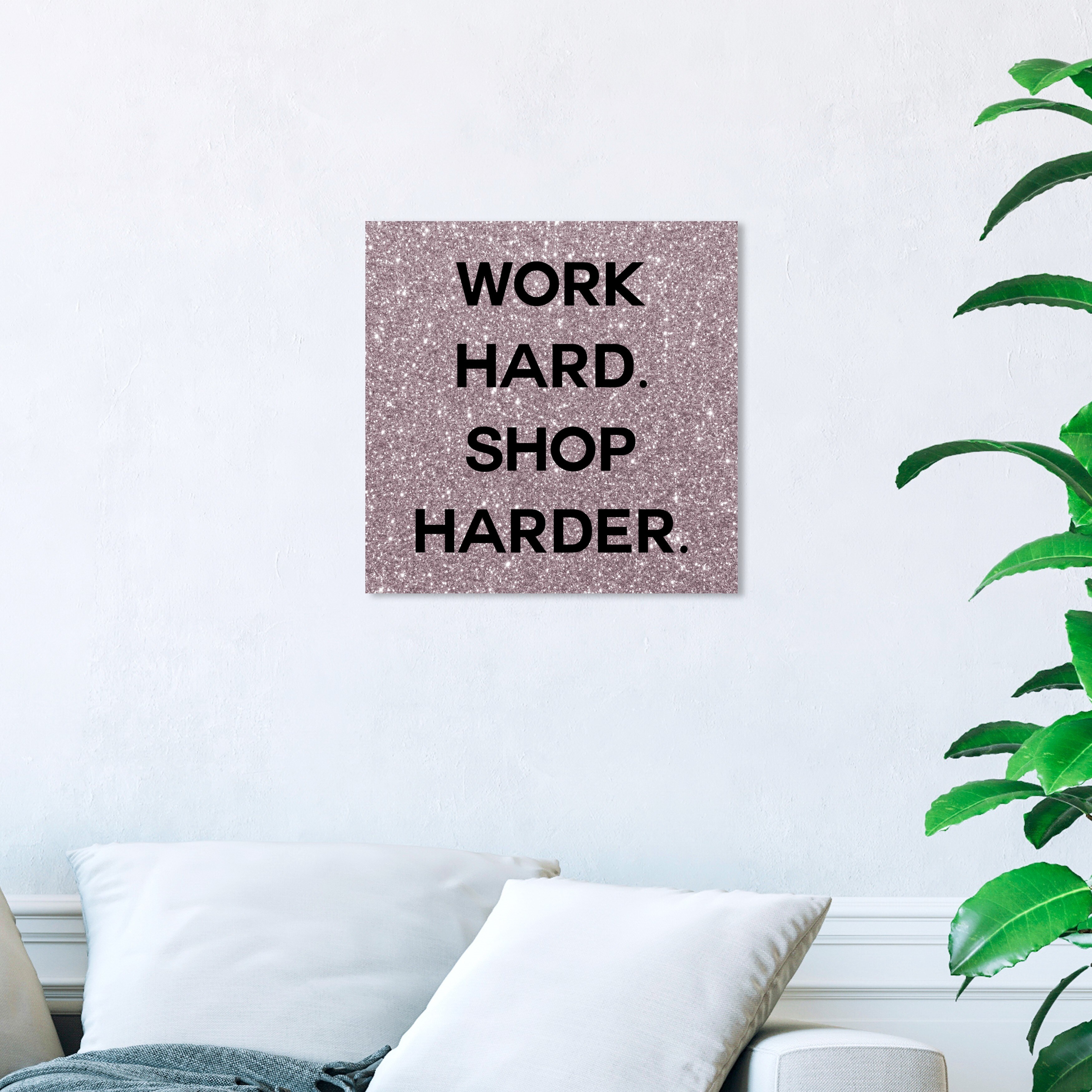 Wynwood Studio Canvas Fashion and Glam Work Hard Shop Harder Pink and Glam Wall Art Canvas Print