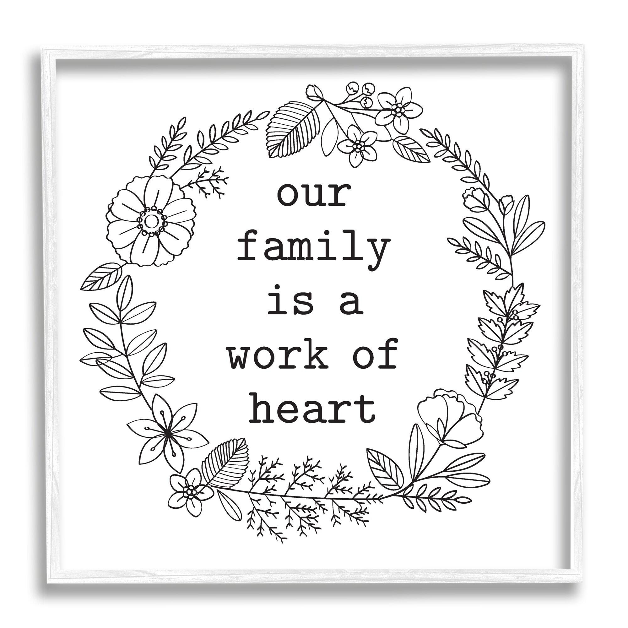 Stupell Work of Heart Floral Outline Wreath Family Quote Framed Wall Art, Design by Lettered and Lined - White