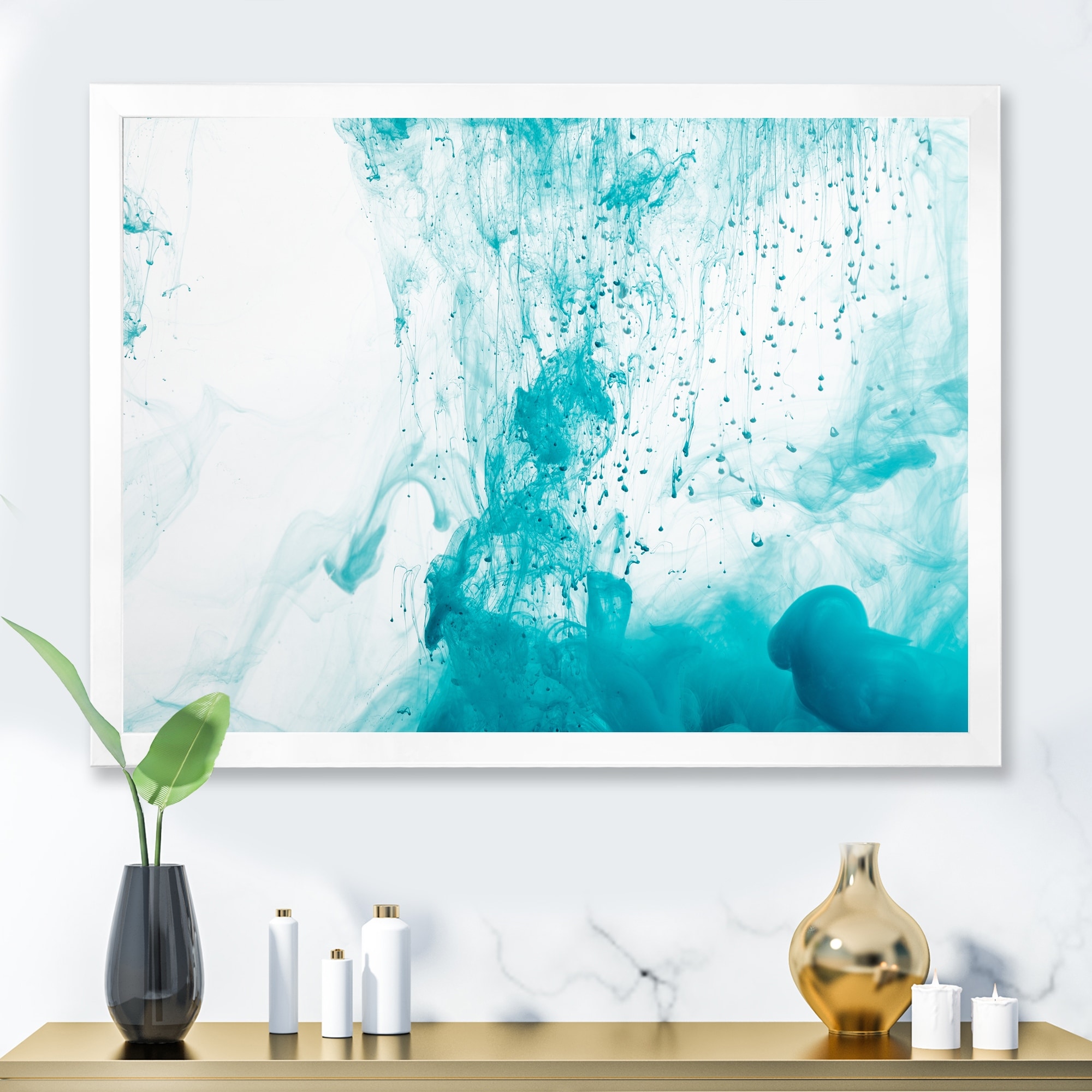 Designart "Blue And White Mixing in Marble" Abstract Framed artwork