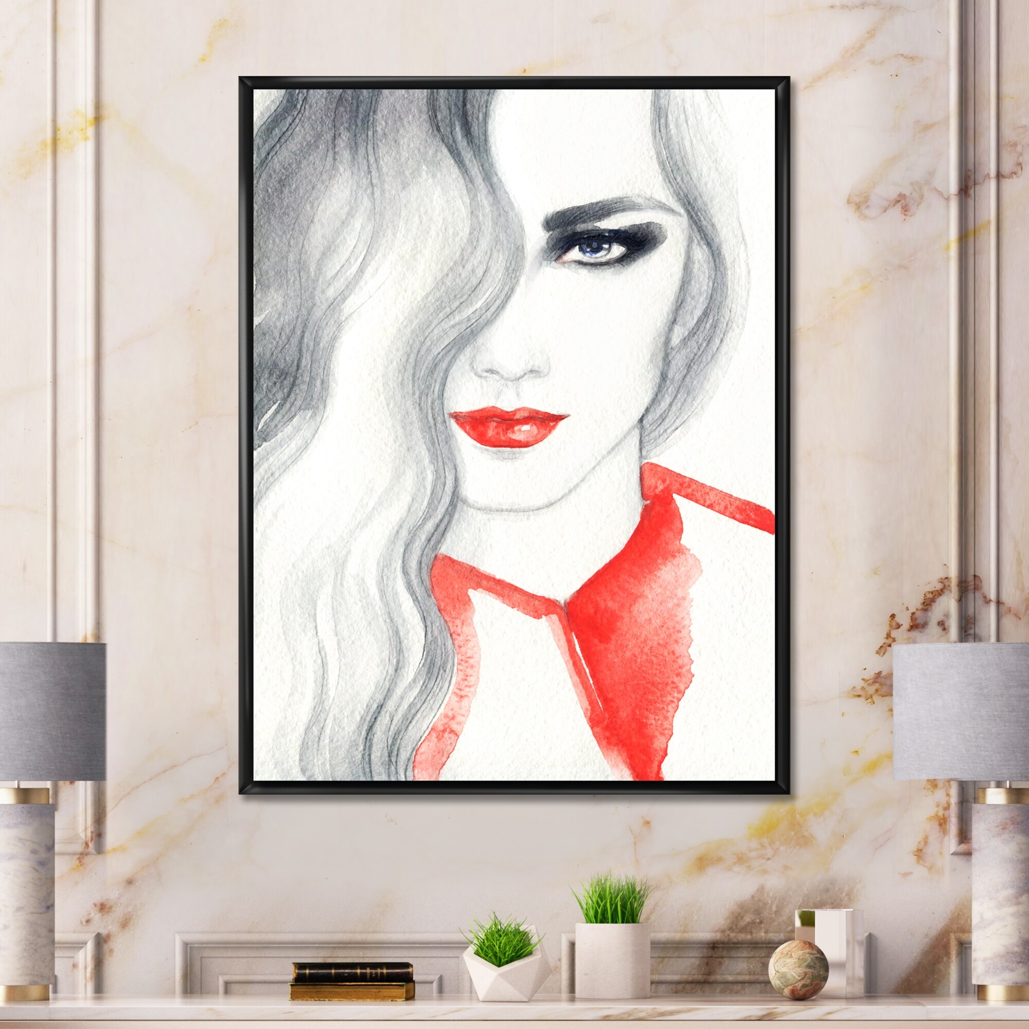 Designart "Elegant Fashion Woman V" Glam Framed Canvas artwork