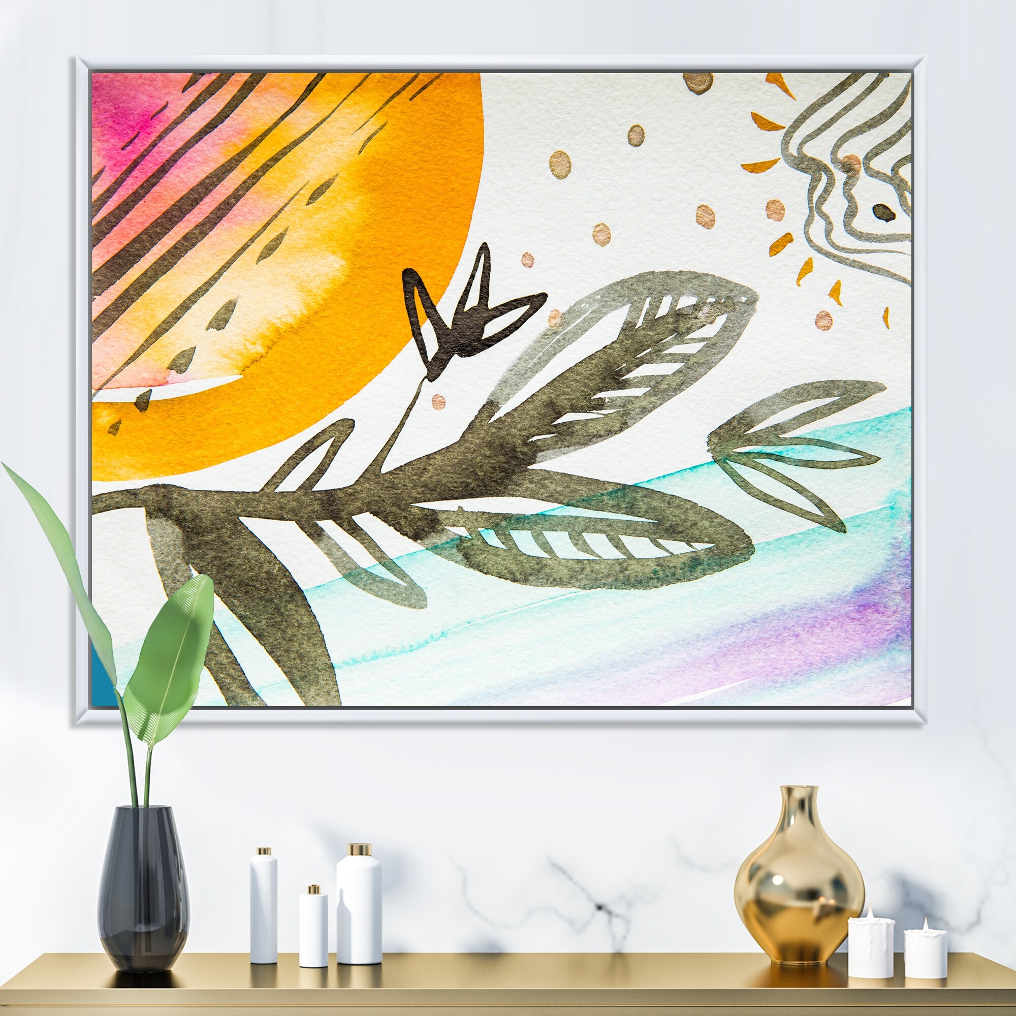 Designart "Multicolor Abstract Plant Petals" Modern Floral Framed Canvas artwork