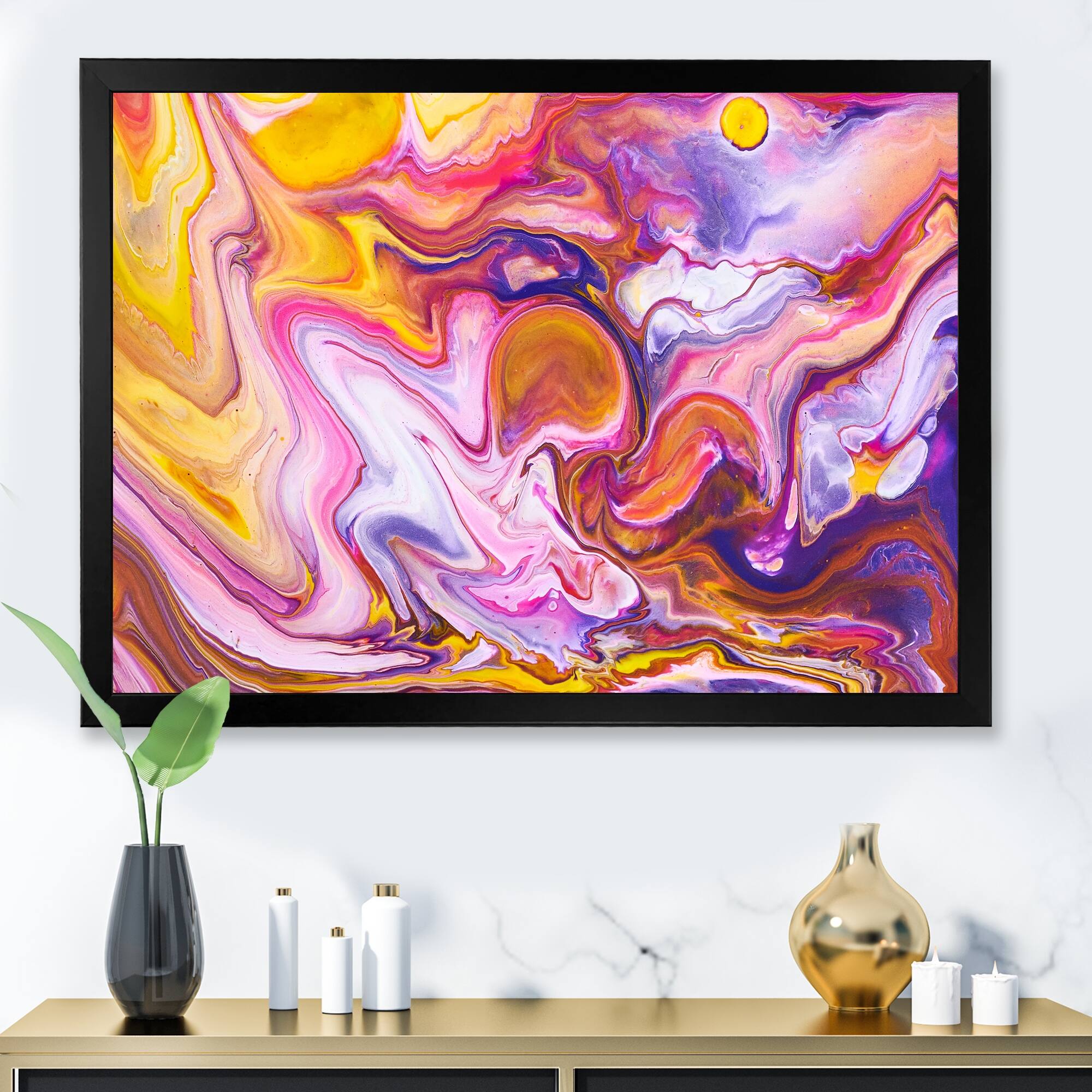 Designart "Multi & Pink Acrylic Fluid Art II" Abstract Framed artwork