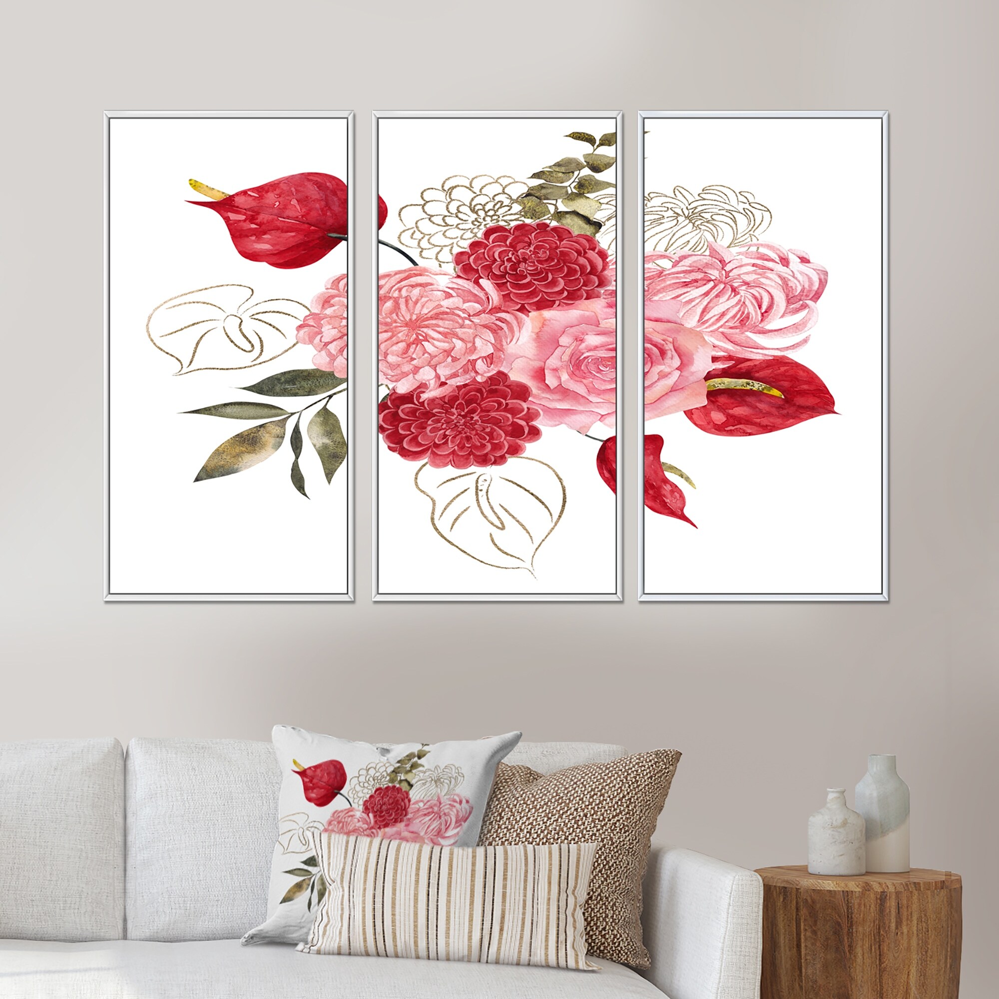 Designart "Fall Flower Bouquet, Apple Berries And Leaves VI" Traditional Framed Artwork Set of 3 - 4 Colors of Frames