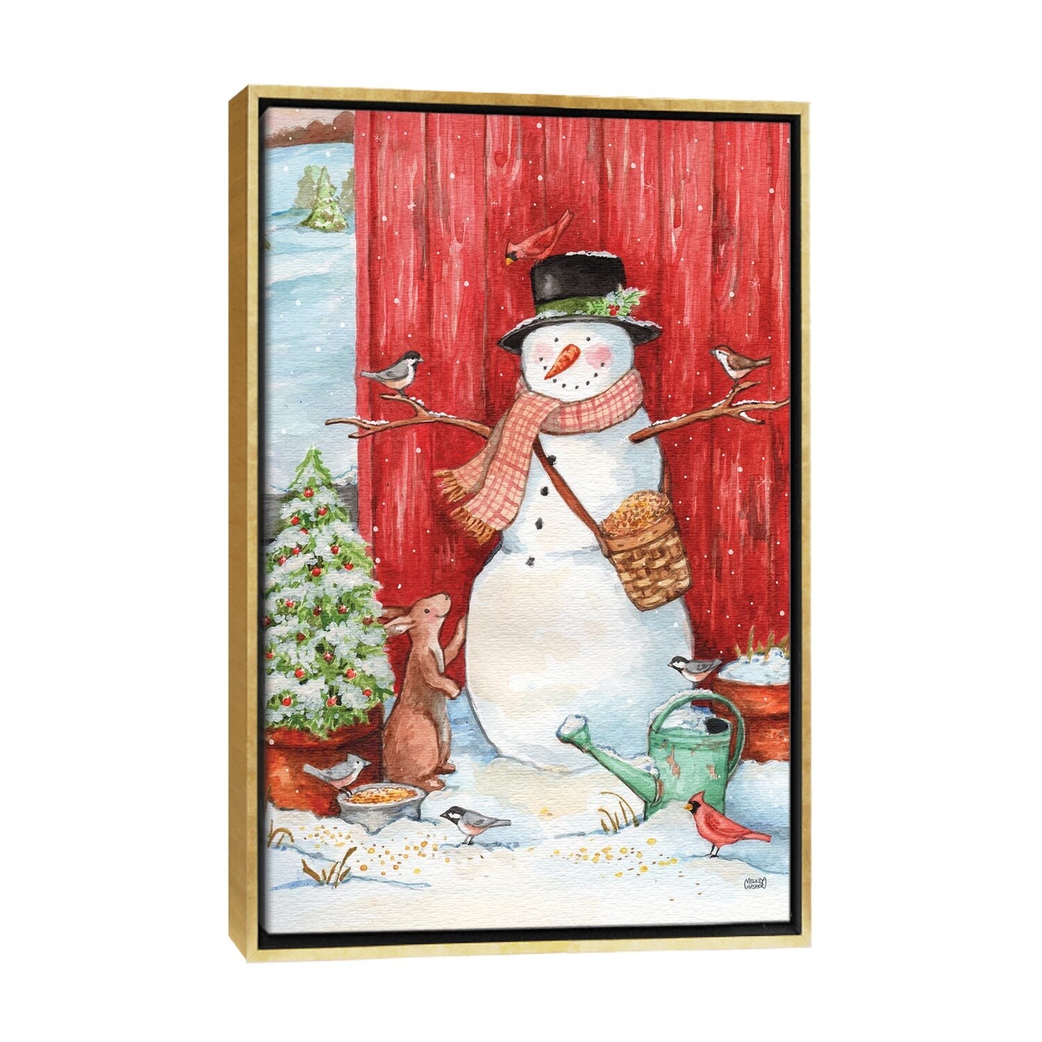 iCanvas "Snowman With Birds And Flurries" by Melinda Hipsher Framed Canvas Print