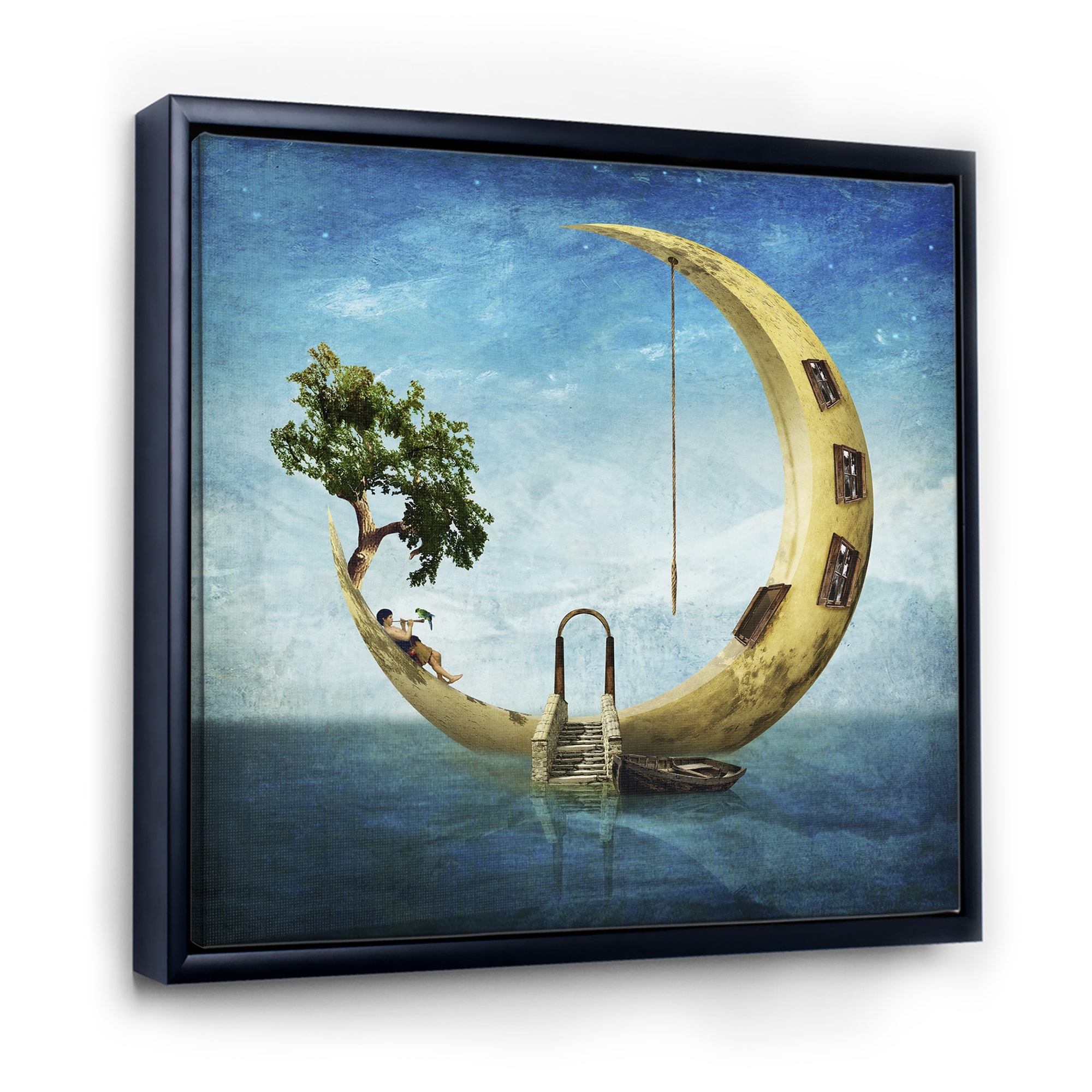 Designart "Home Sweet Moon" Modern & Contemporary Framed Canvas Artwork Print