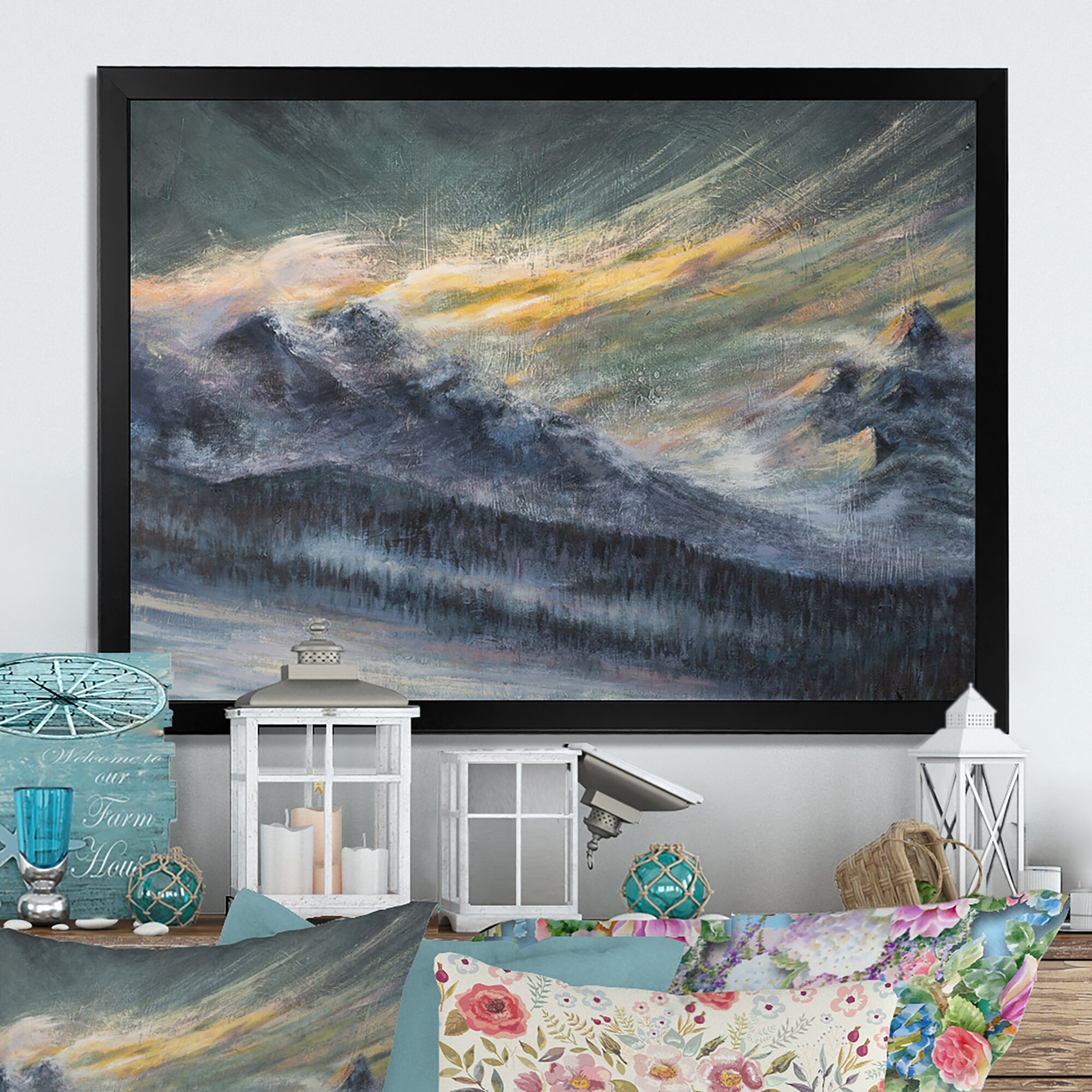 Designart "Storm In Grey Winter Mountains" Traditional Framed artwork