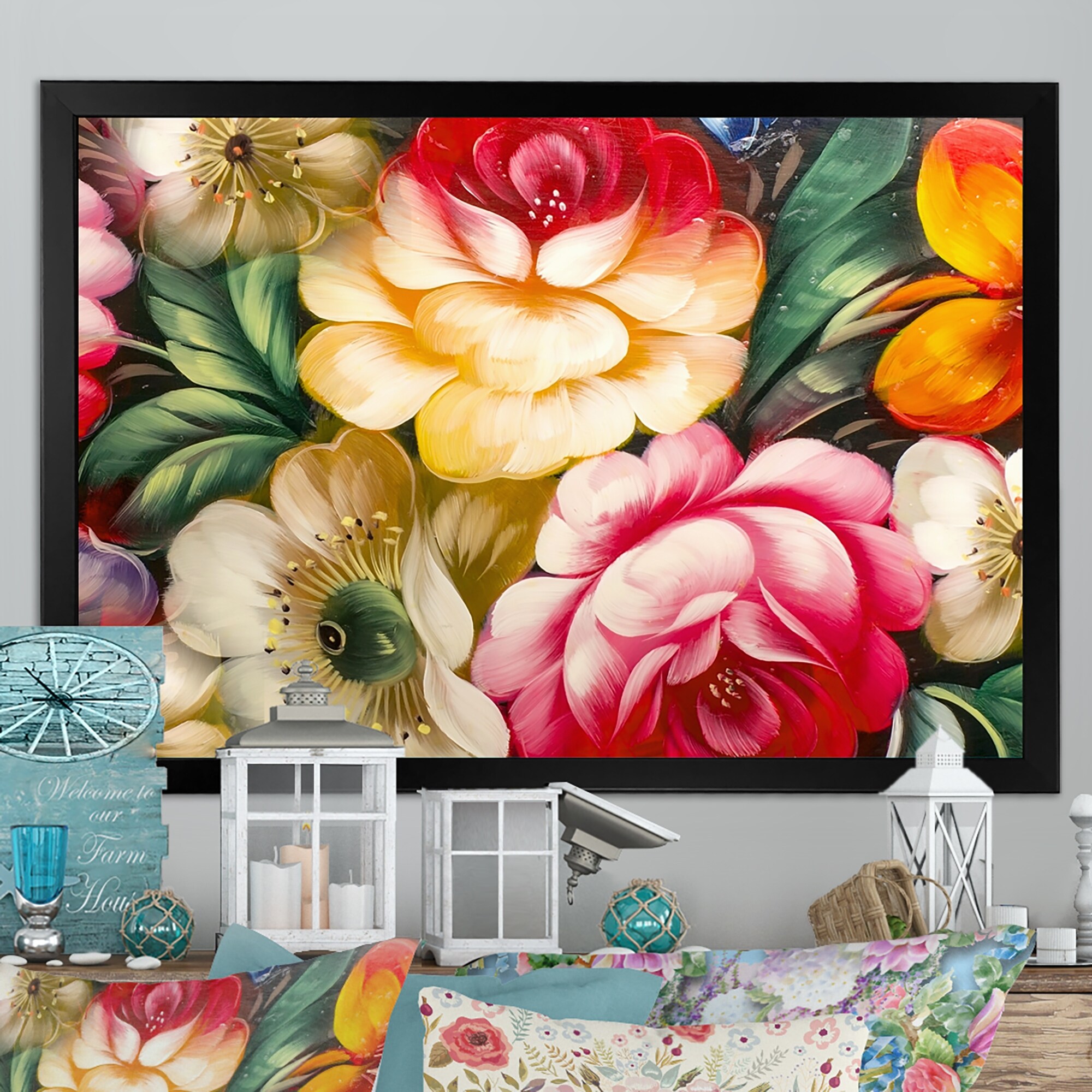 Designart "Yellow And Red Vintage Flowers VII" Traditional Framed artwork