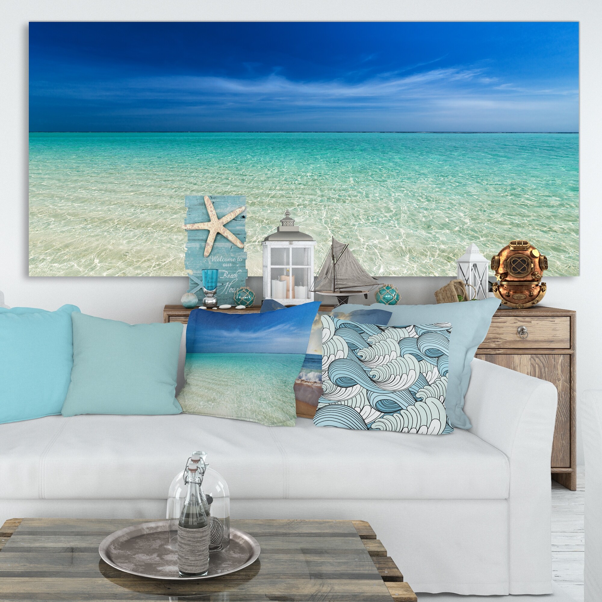 Designart "Turquoise Ocean Under Blue Sky" Modern Seascape Canvas Artwork