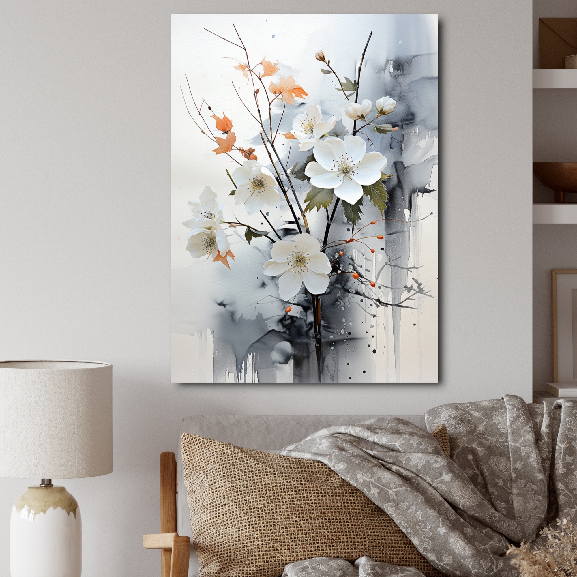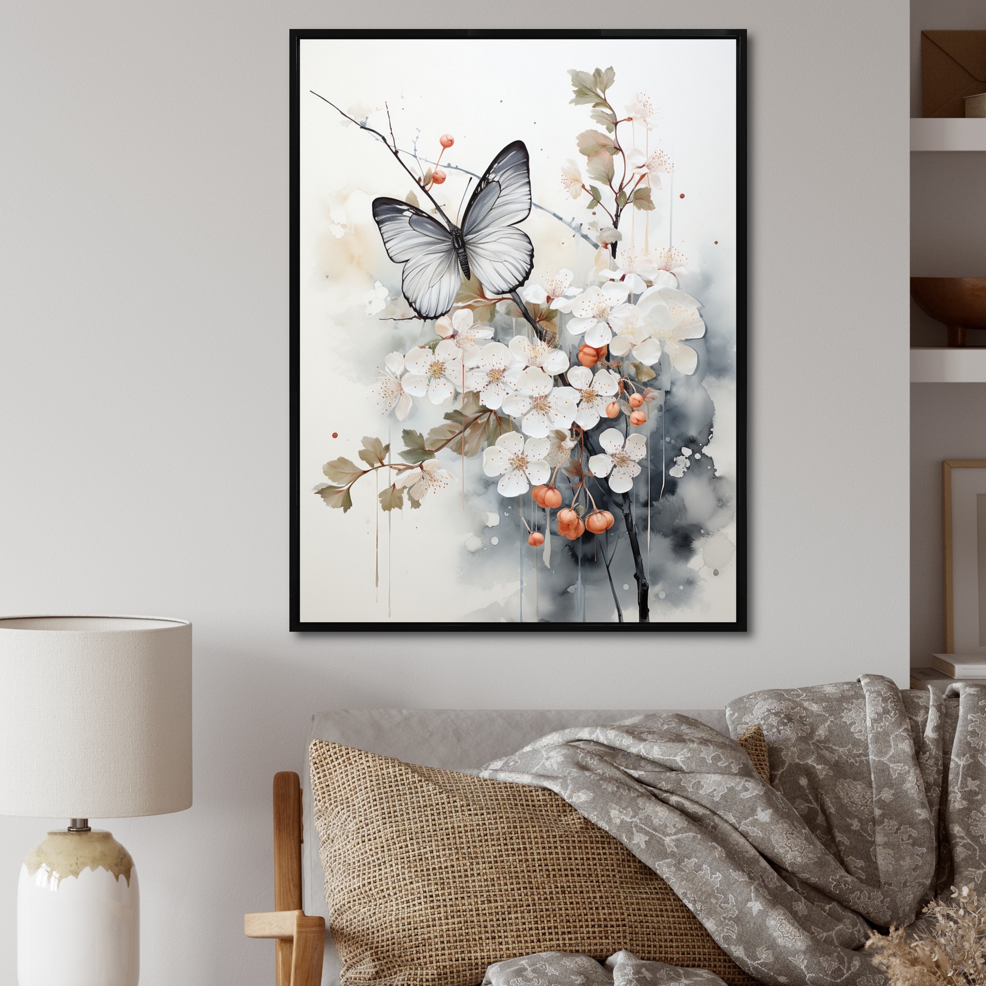 Designart "Asian Art White And Grey Butterfly" Asian Art Framed Canvas Prints