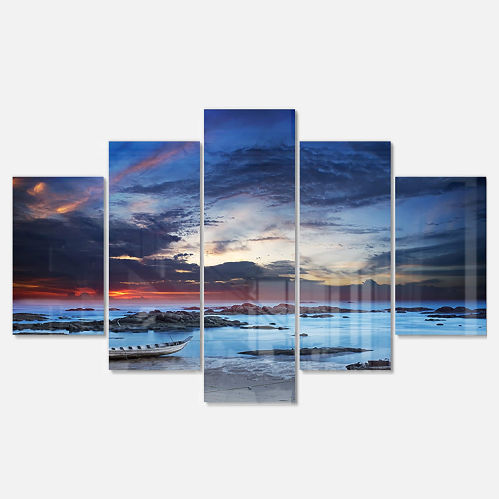 Designart 'Colorful Traditional Asian Boats' Landscape Artwork Glossy Metal Wall Art