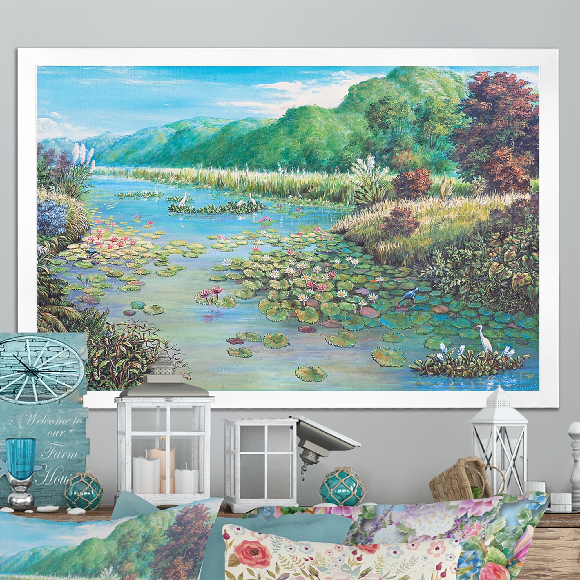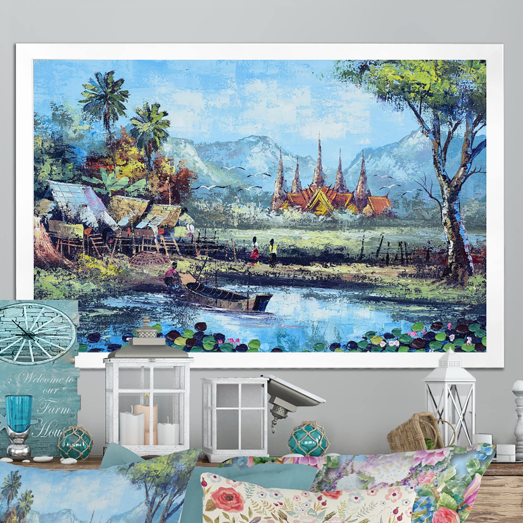 Designart "Vintage Asian Waterside Life" Traditional Framed Wall Decor