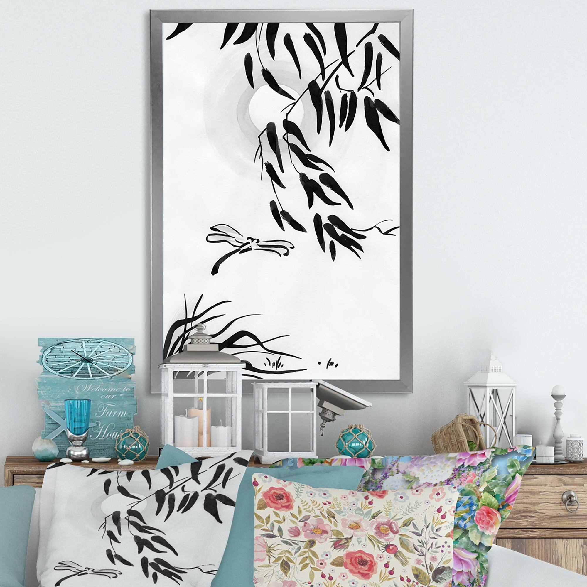 Designart "Asian Sketch of Nature Dragonfly" Traditional Framed Wall Decor