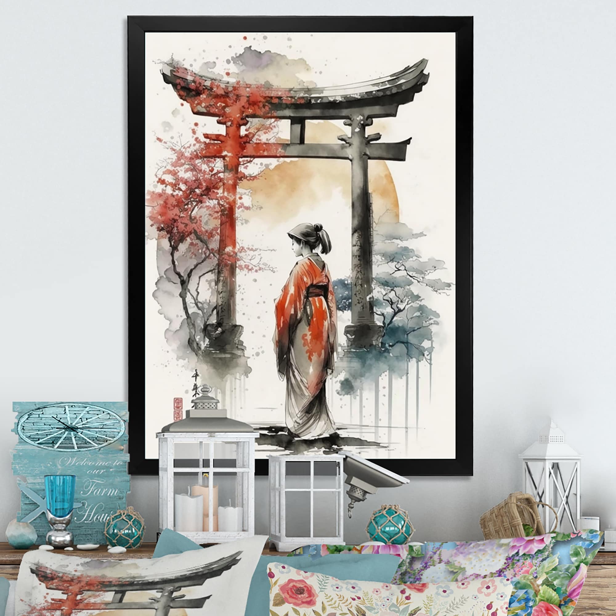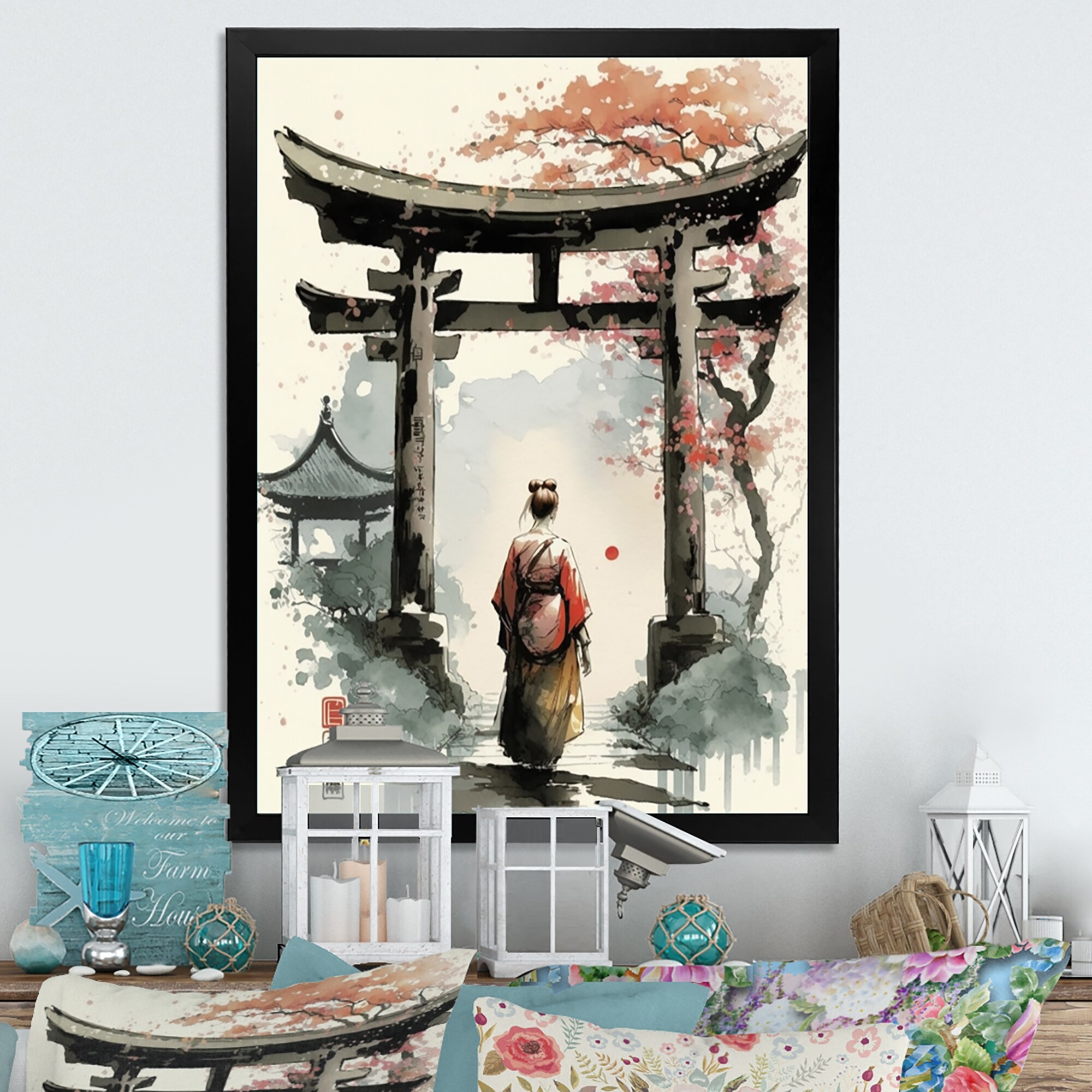 Designart "Asian Female III" Japon Landscape Framed Canvas Art Print