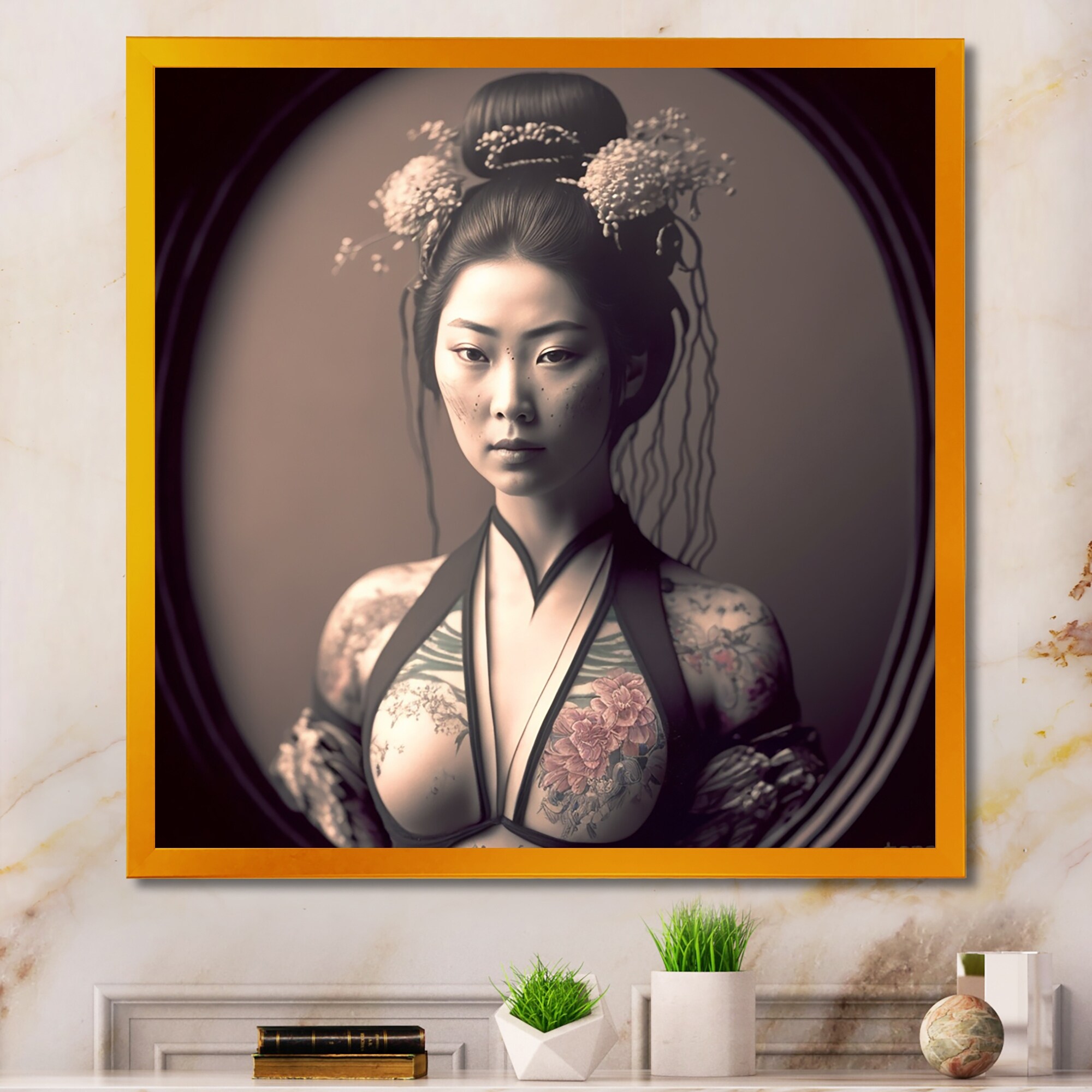 Designart "Japanese Vintage Edo Portrait " Asian Woman Framed Canvas Wall Art Print