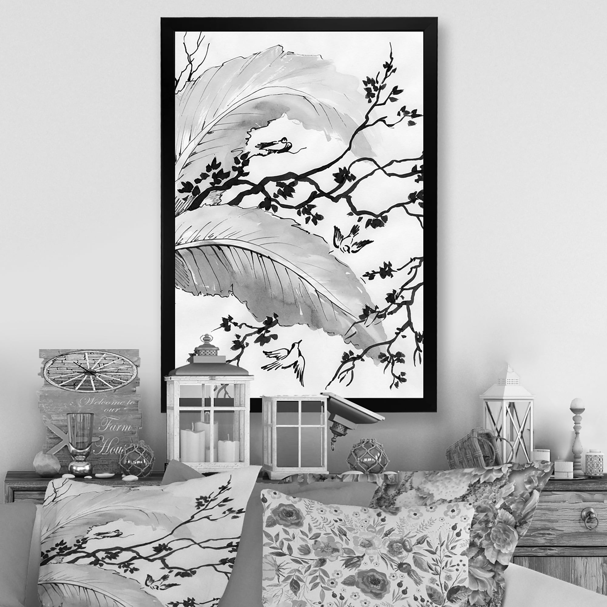 Designart "Asian Sketch of Nature Birds" Traditional Framed Wall Art