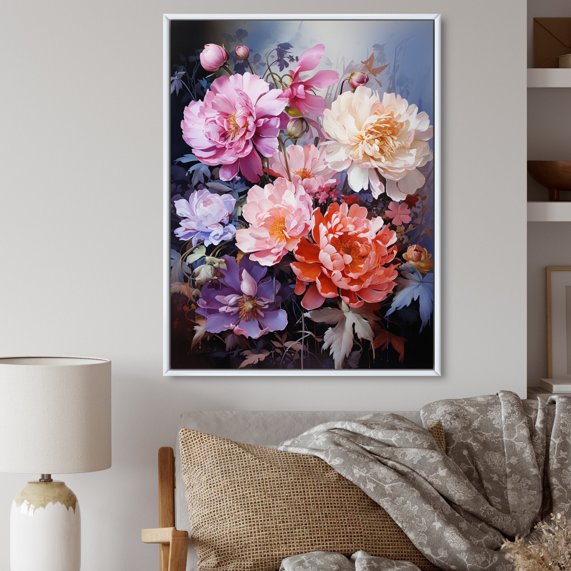 Designart "Asian Art Peonies in Coral" Asian Art Framed Wall Decor
