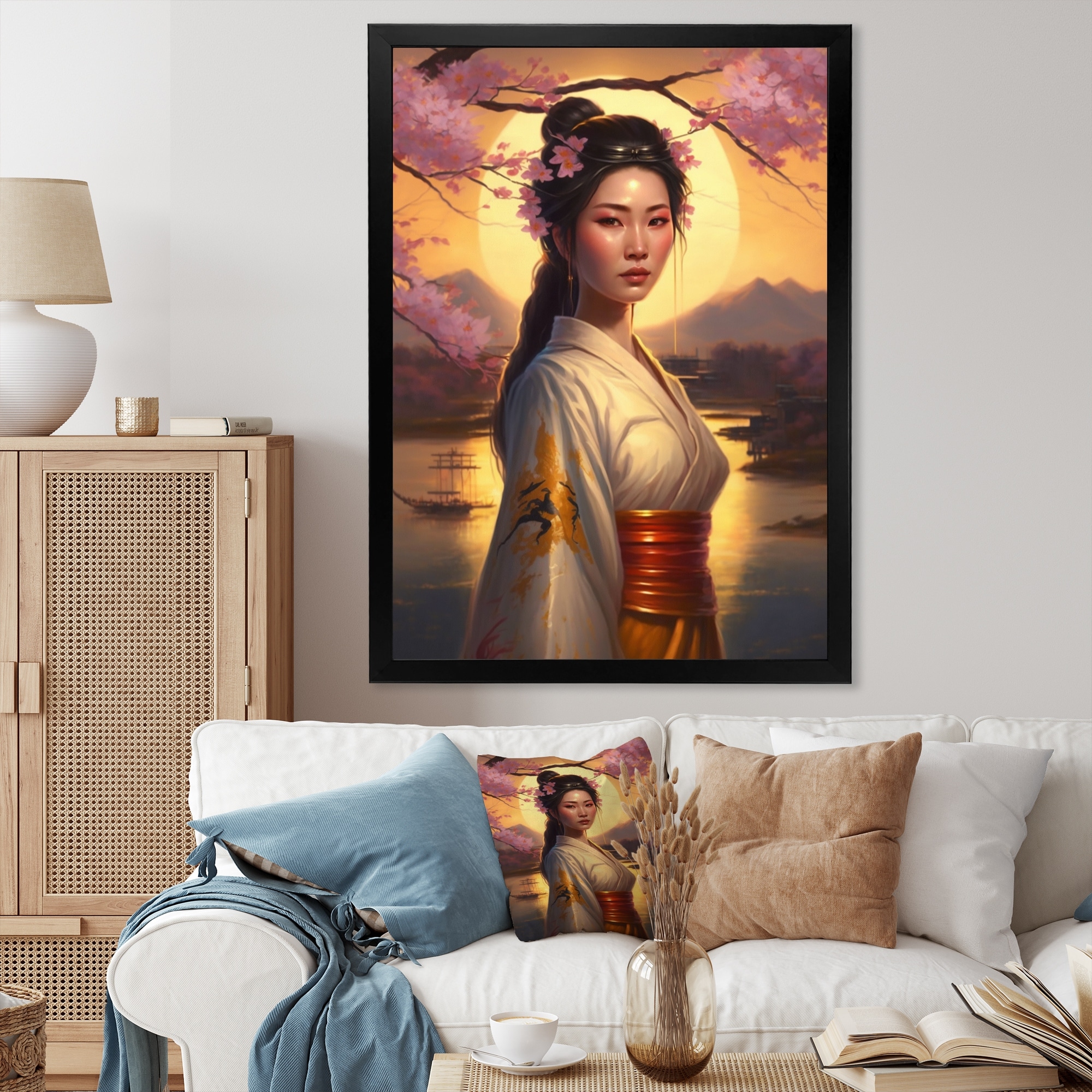 Designart "Japanese Blooming Beauty" Asian Woman Framed Canvas Art Print