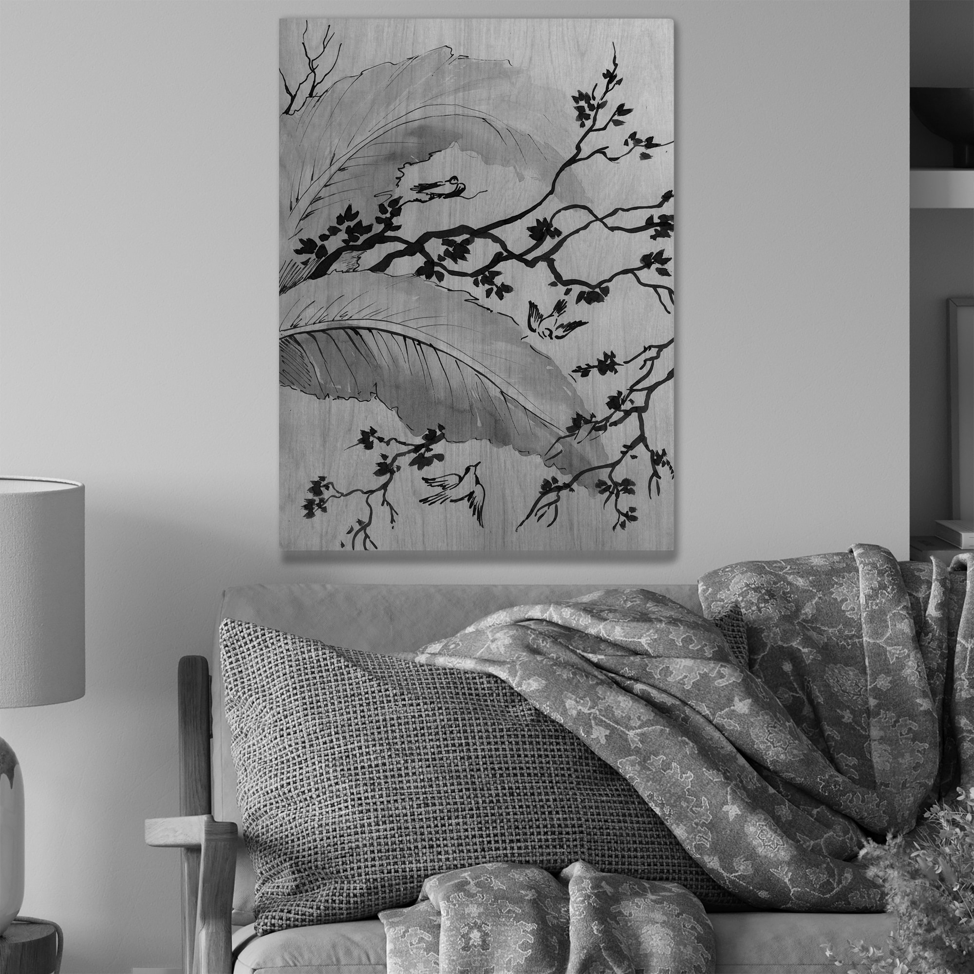 Designart 'Asian Sketch of Nature Birds' Traditional Wood Wall Art Décor - Natural Pine Wood