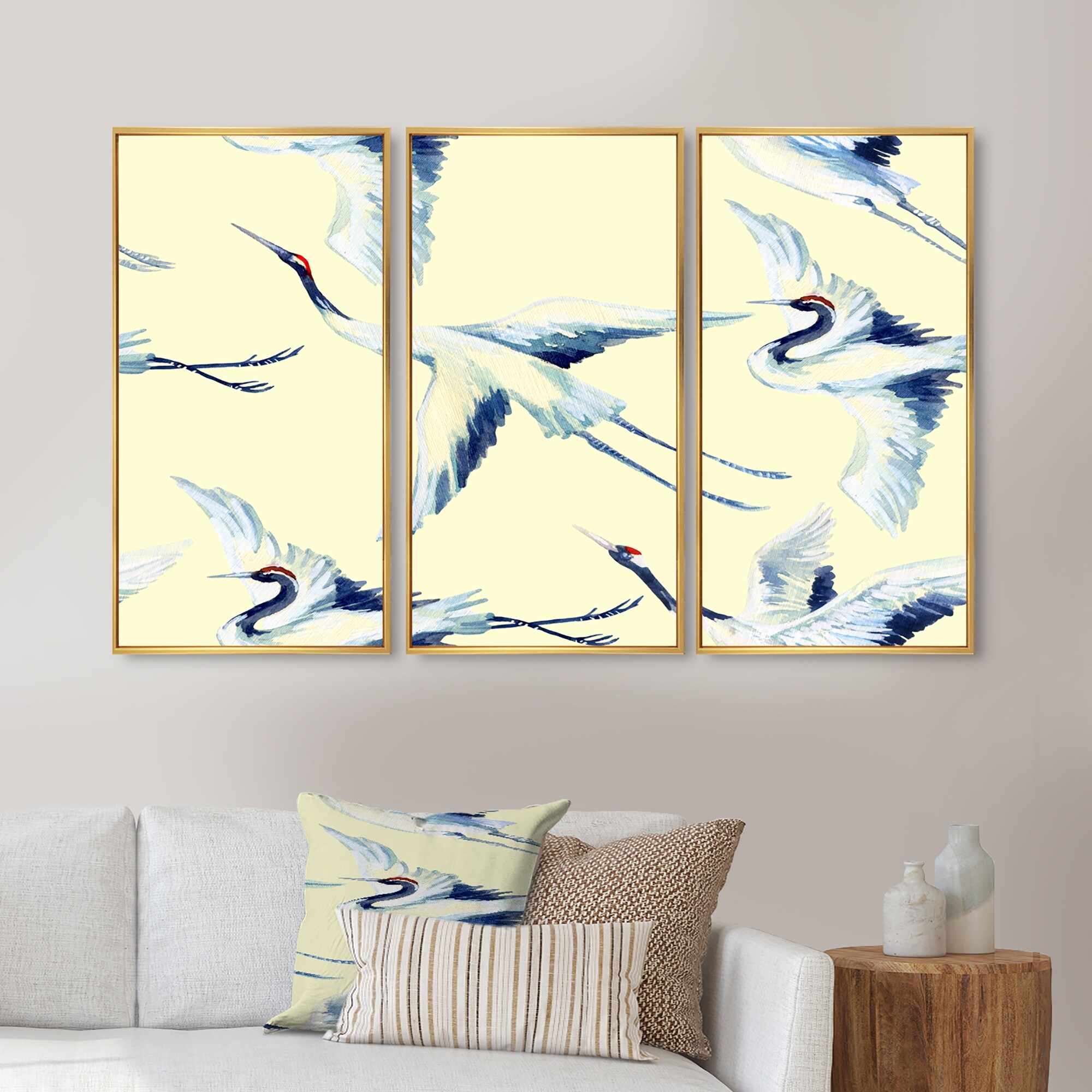 Designart "Asian Crane Birds Flying I" Traditional Framed Art Set of 3 - 4 Colors of Frames