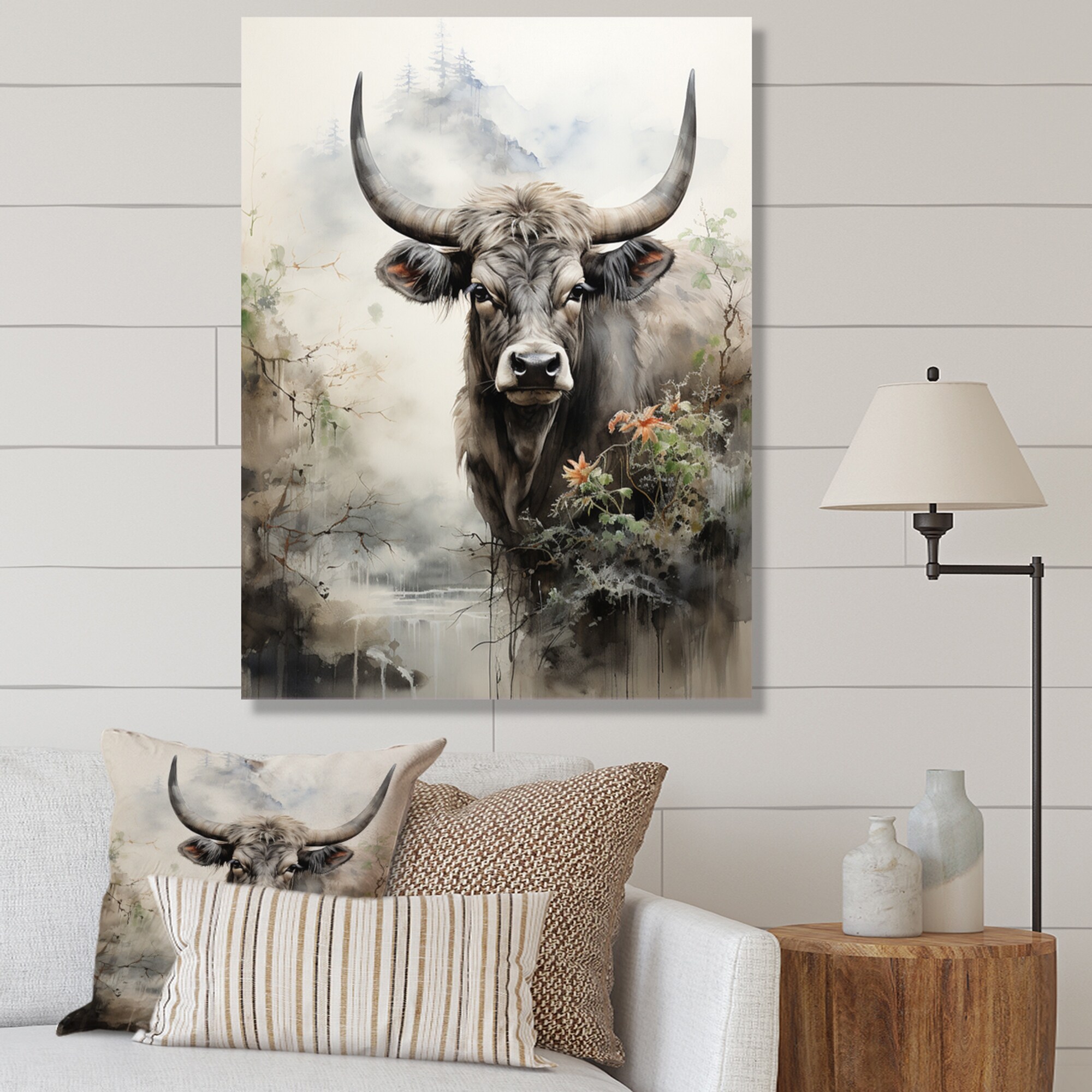 Designart "Asian Art Cow Sumi XI" Asian Art Wall Art Living Room