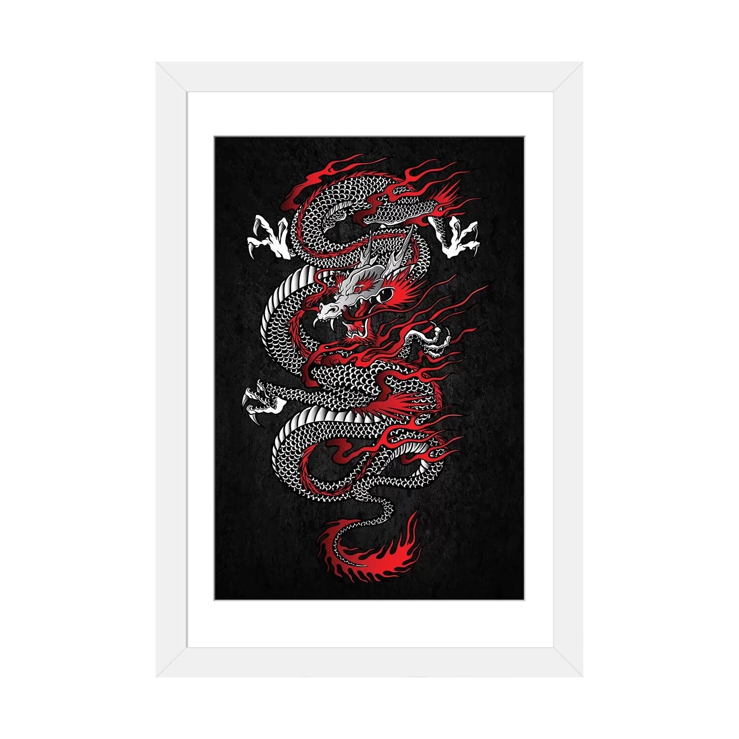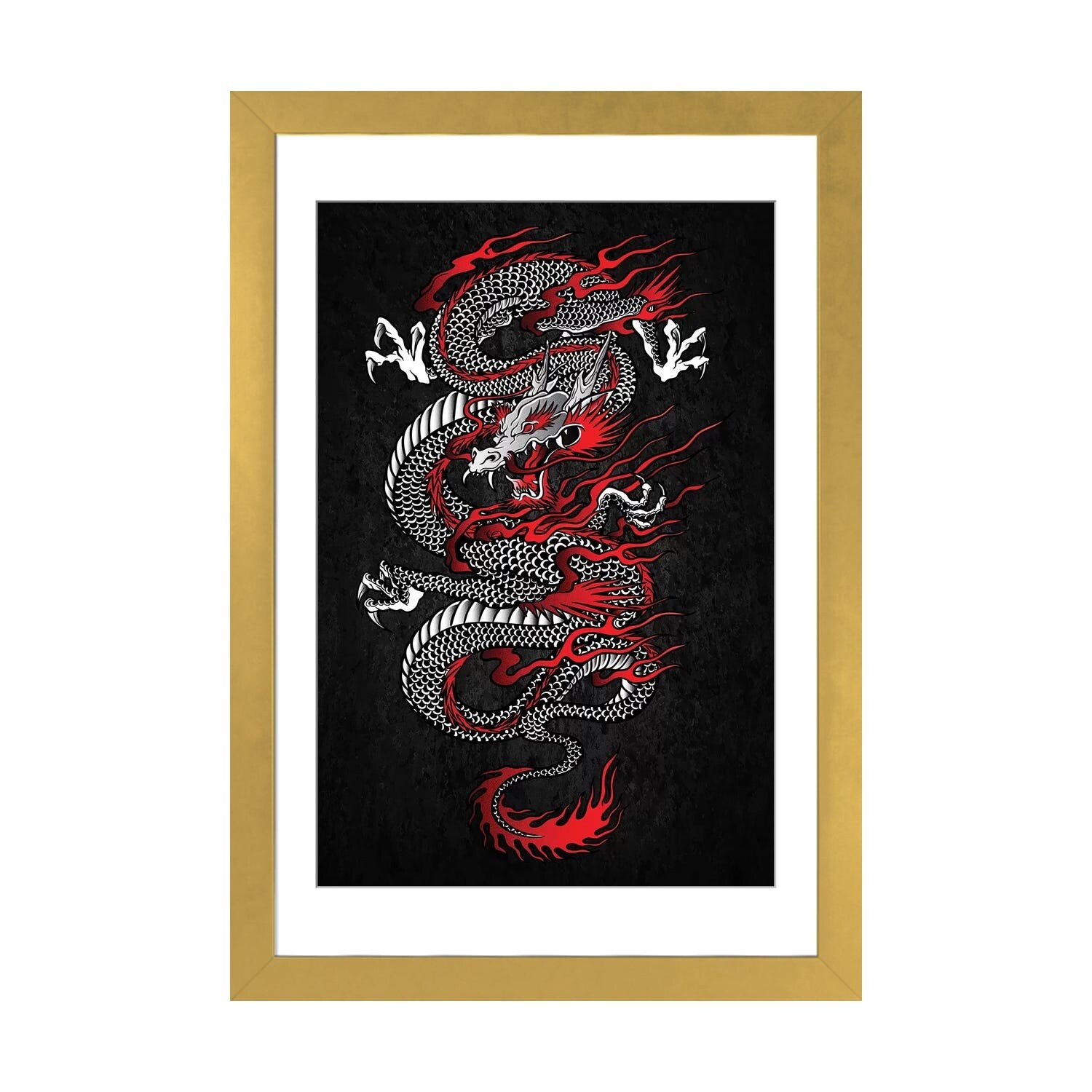 Asian Brocade IV -Framed Print w/glass-Cherry Red