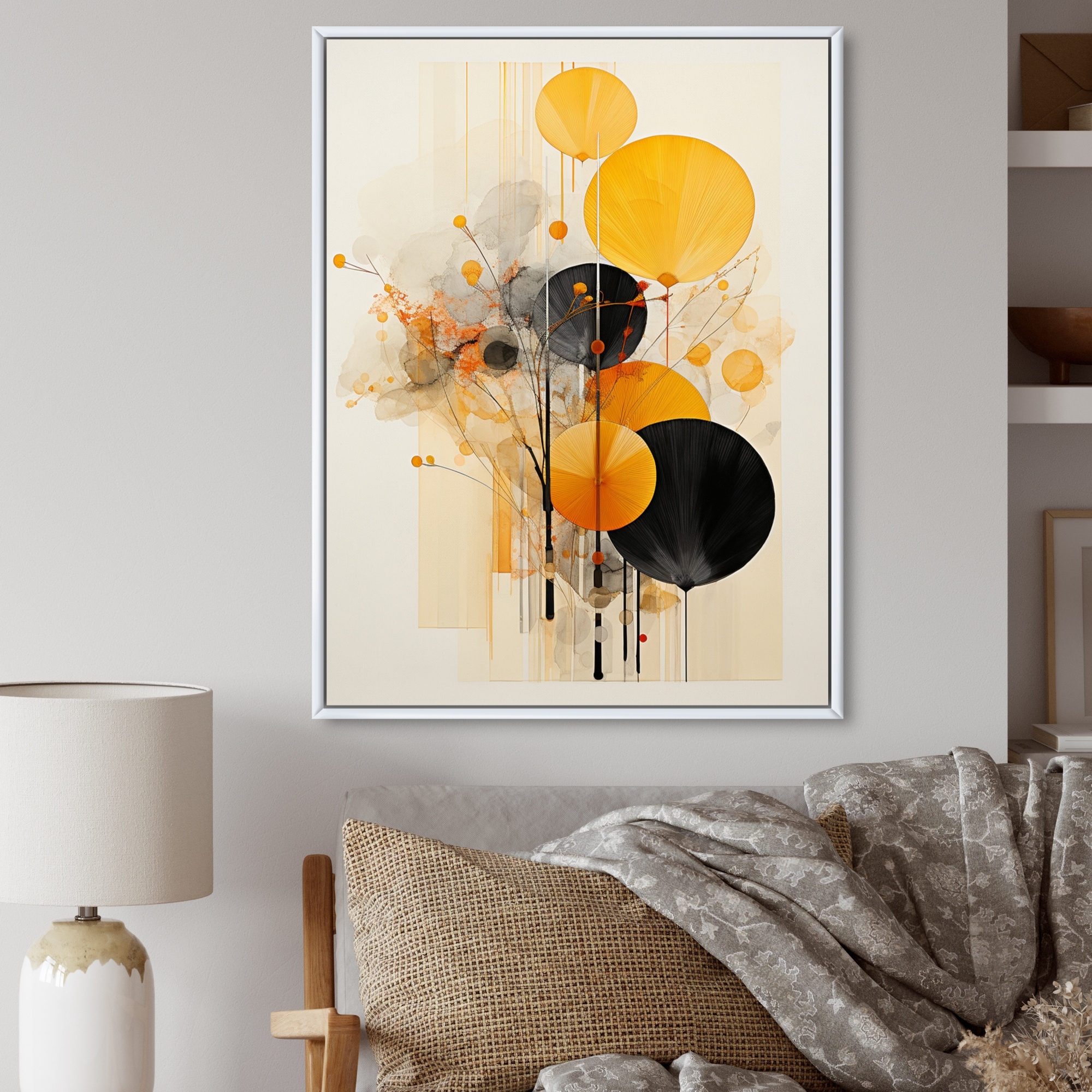 Designart "Gold And Black Floral Asian Woman II" Contemporary Glam Framed Canvas Art Print