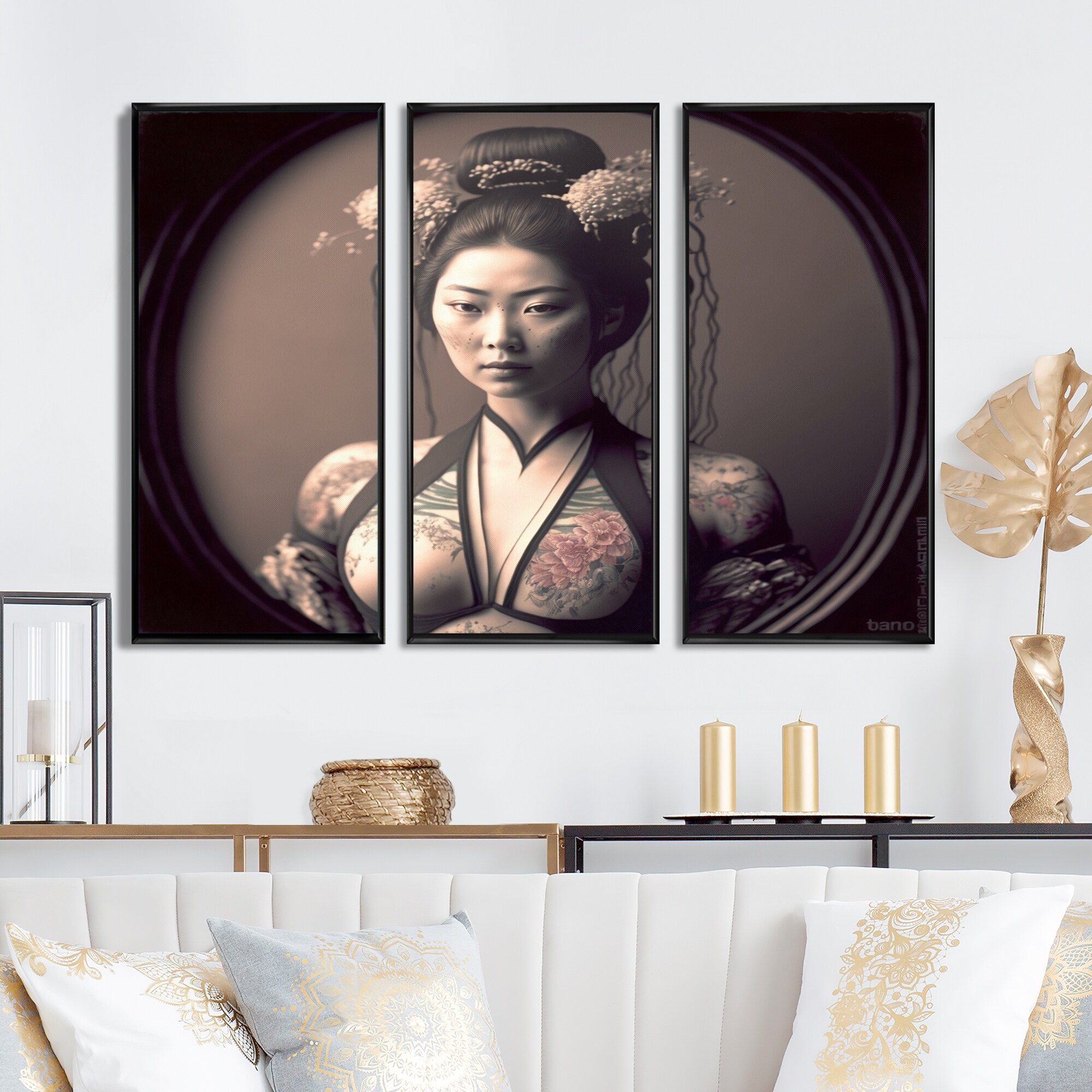Designart "Japanese Vintage Edo Portrait " Asian Woman Framed Canvas Wall Art Print - 3 Panels