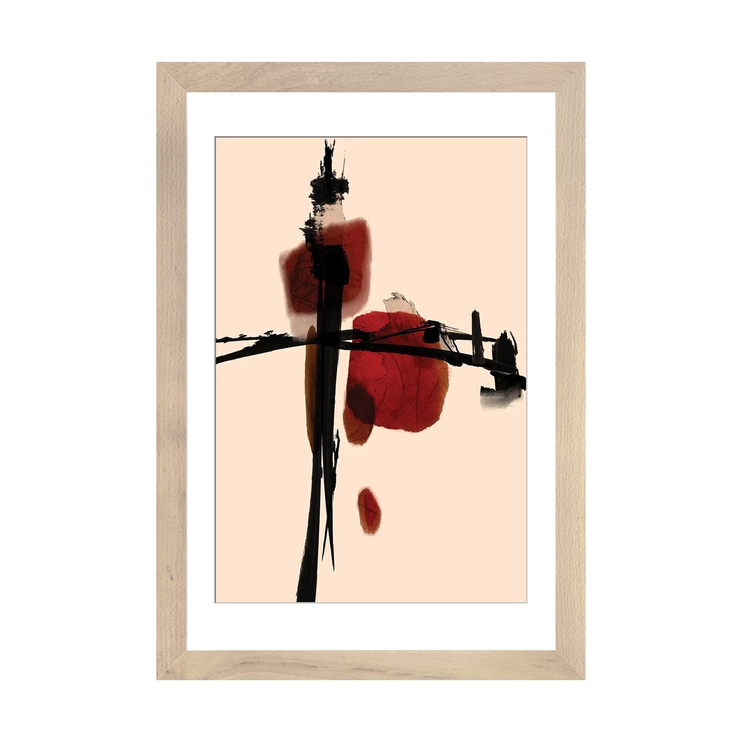 Asian Brocade II -Framed Print w/glass-Cherry Red