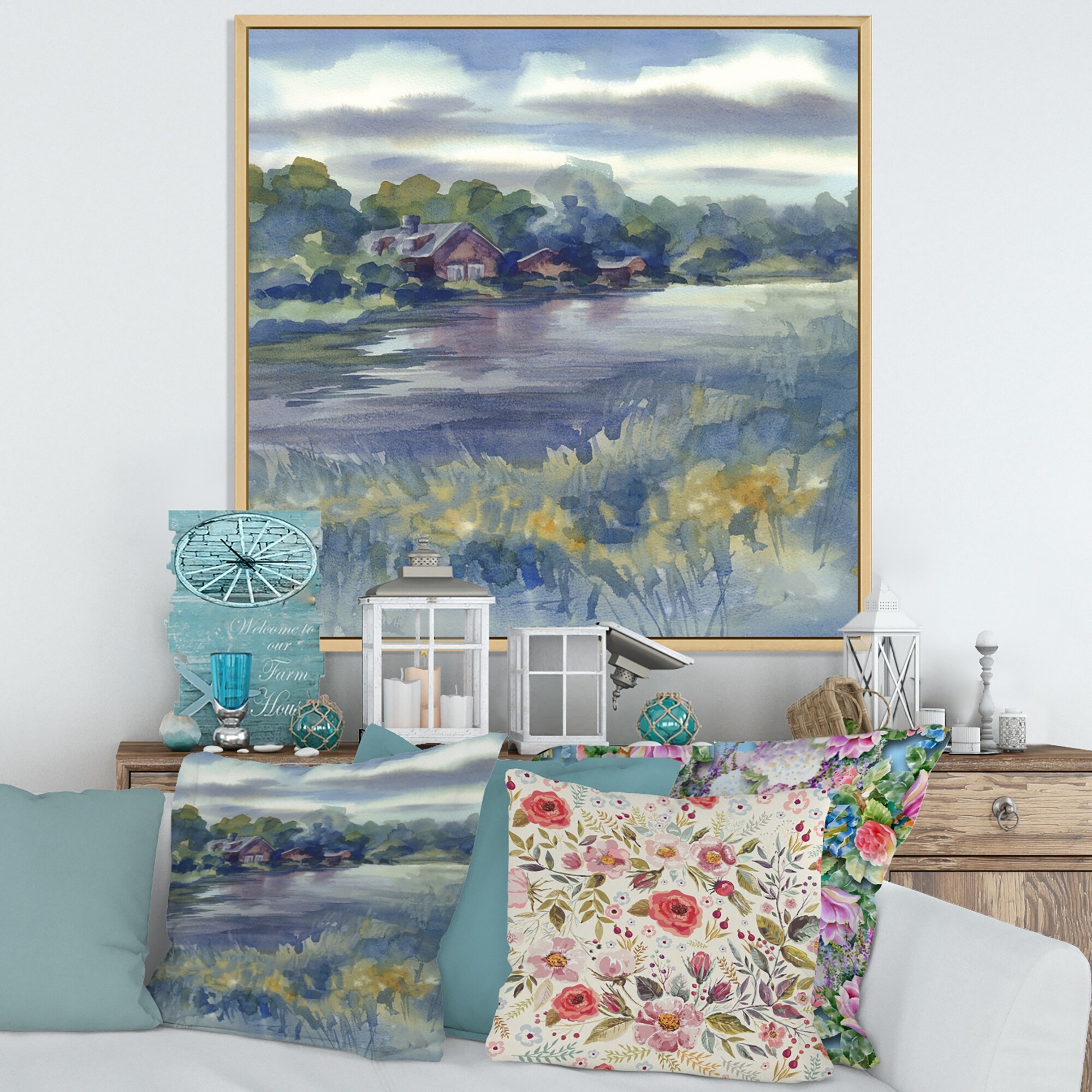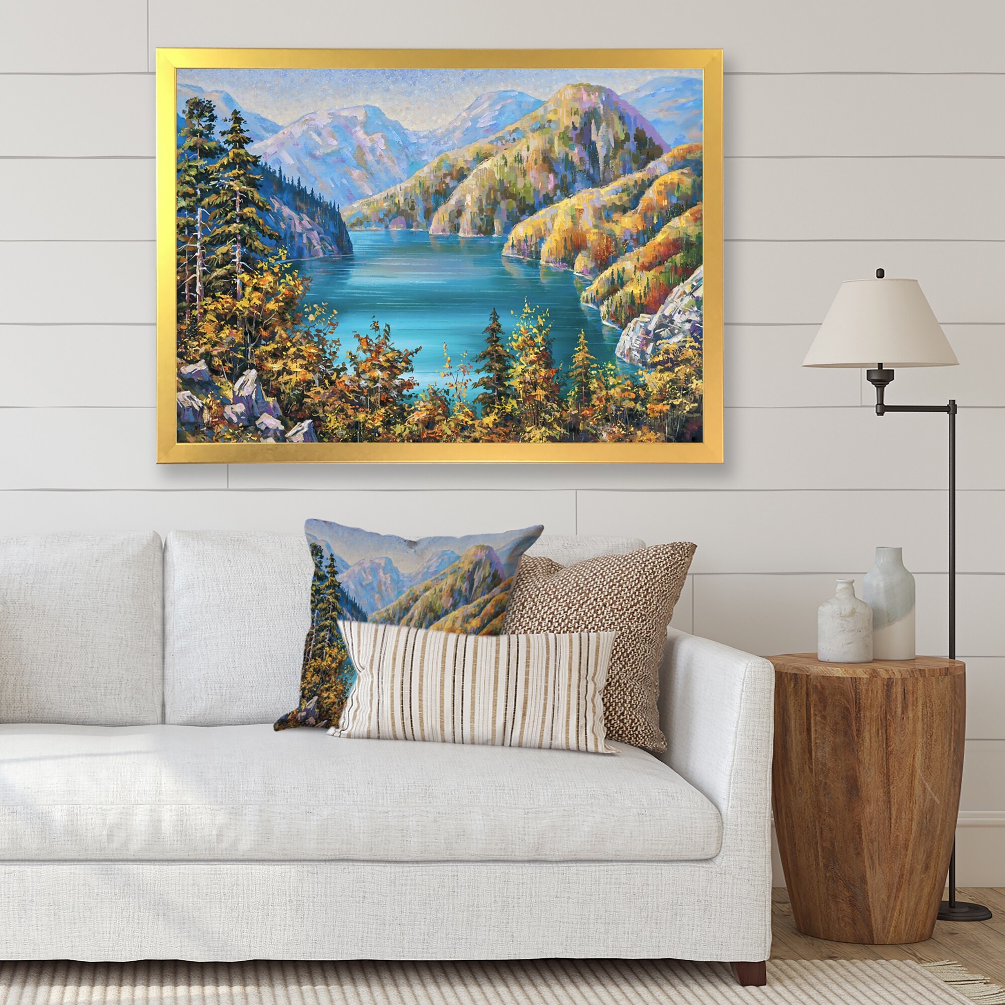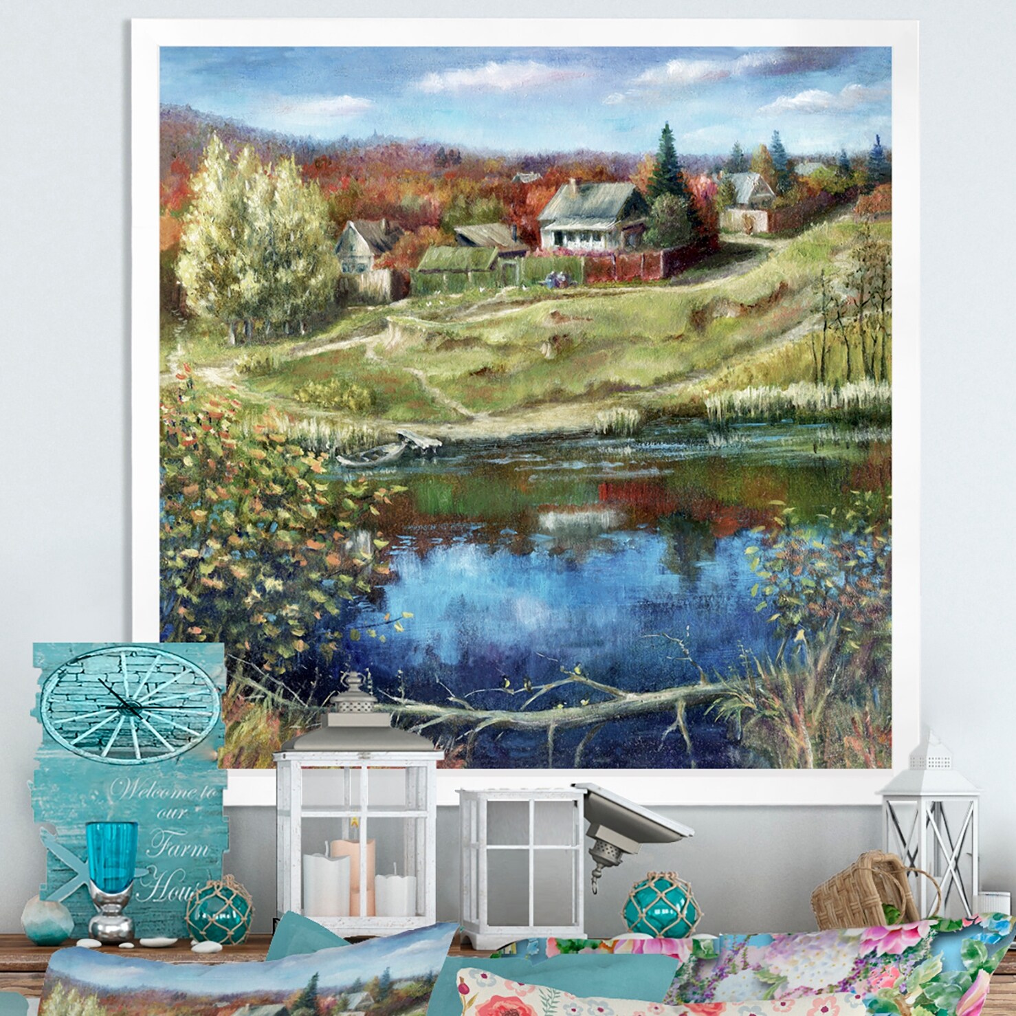 Designart "Rural Village in Autumn Landscape" Lake House Framed Art Print
