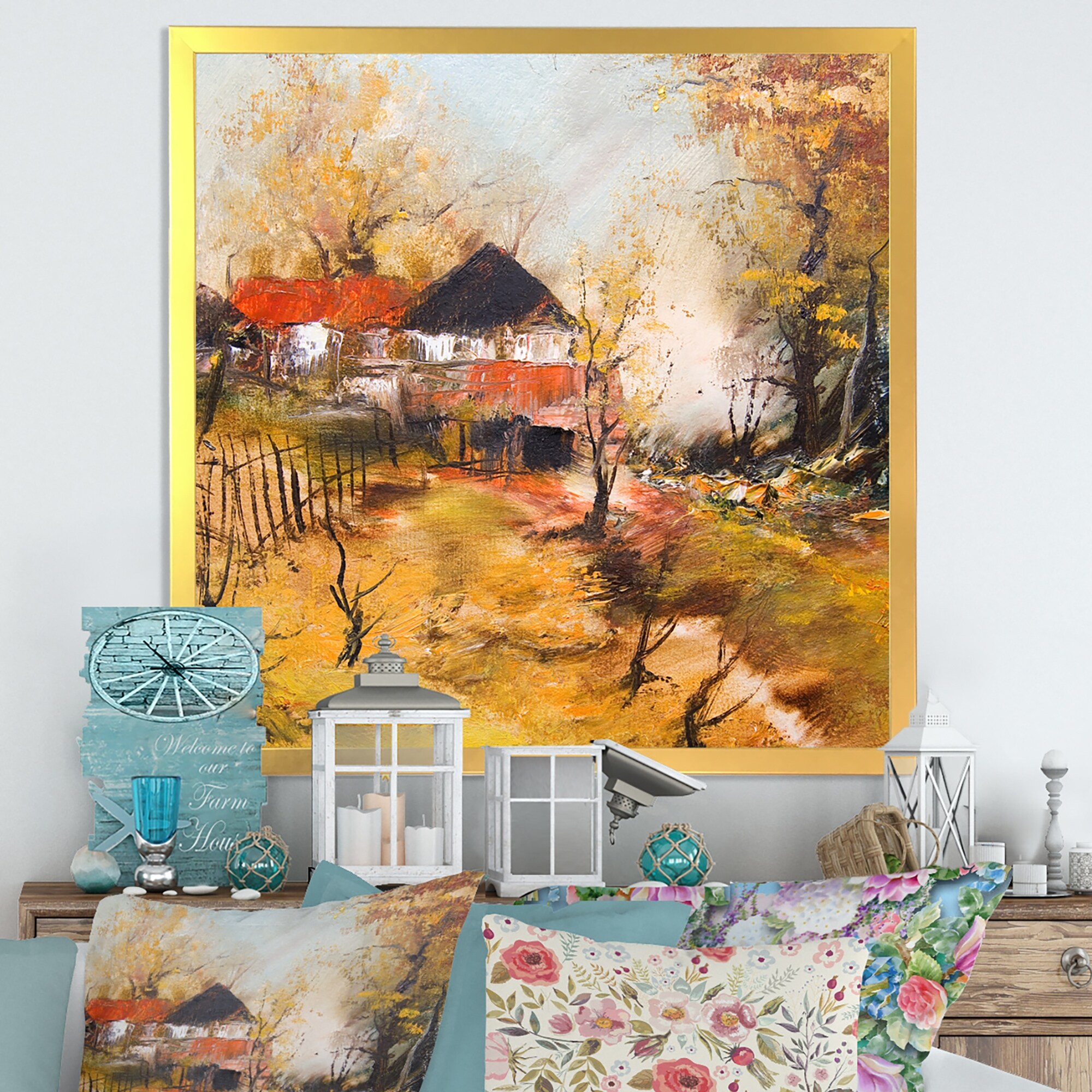Designart "Autumn Landscape With Farmhouse" Farmhouse Framed Wall Decor