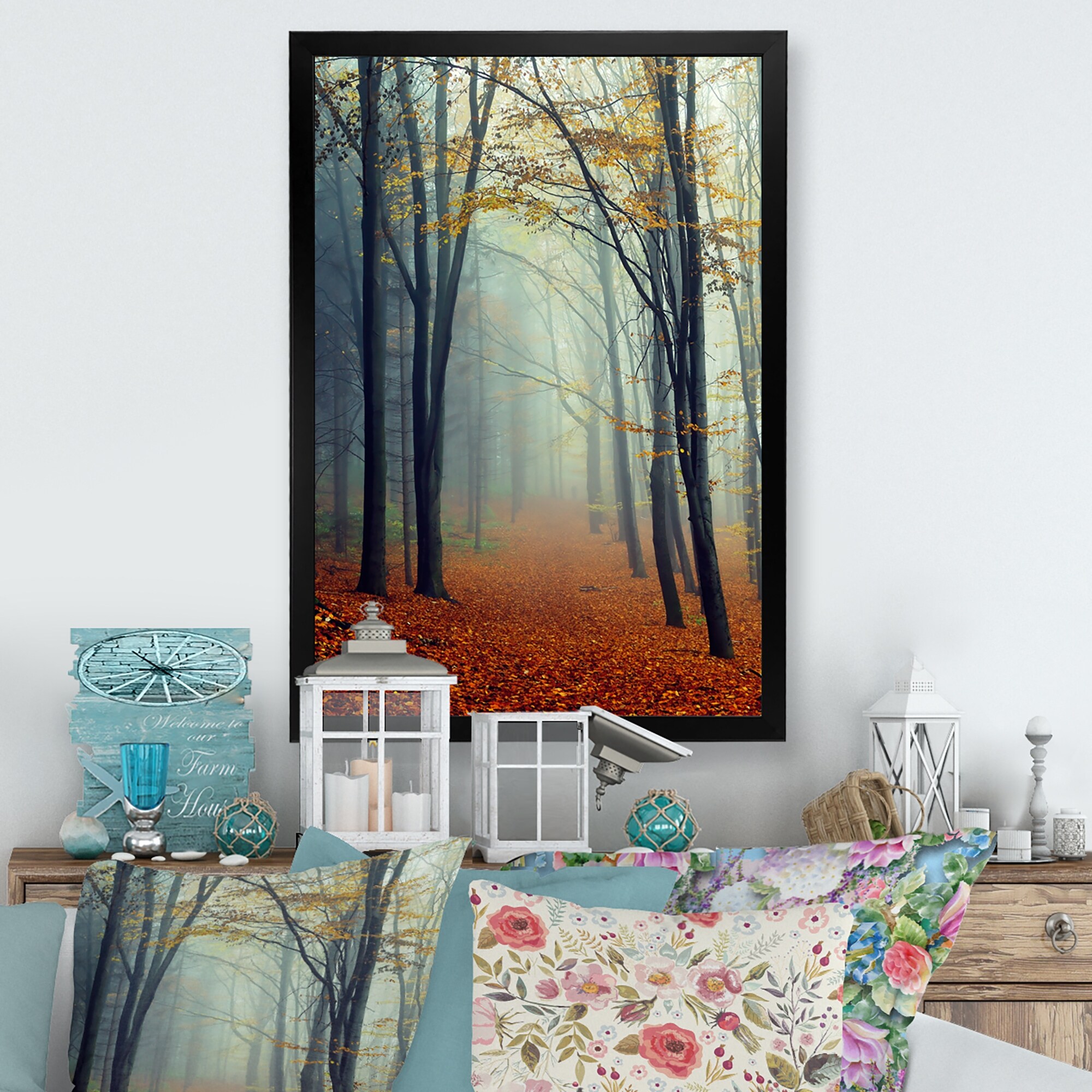Designart "Autumn Colored Forest Treescape XXIV" Farmhouse Framed Canvas Wall Art Print