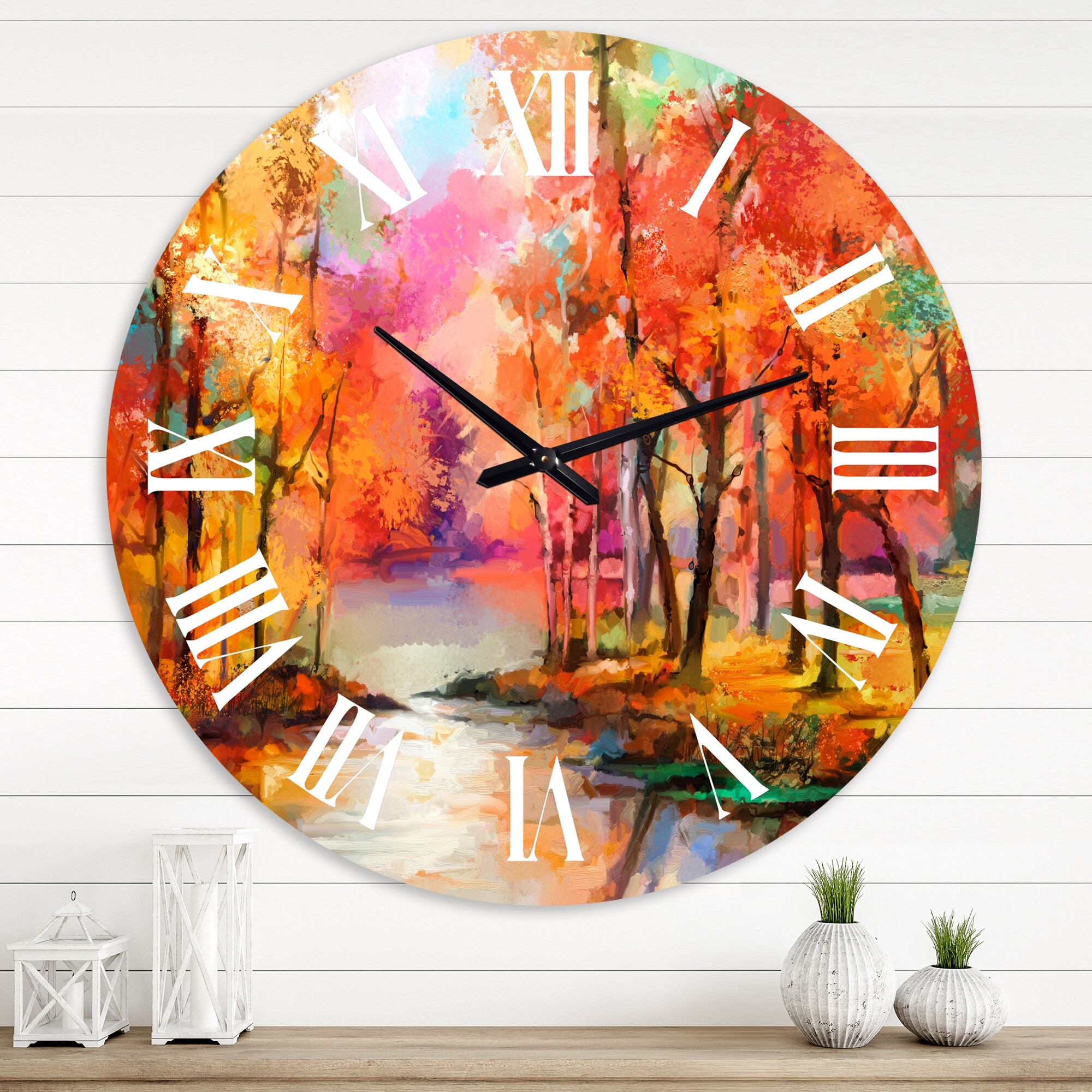 Designart 'Autumn Colored Forest Treescape XXVIII' Farmhouse wall clock