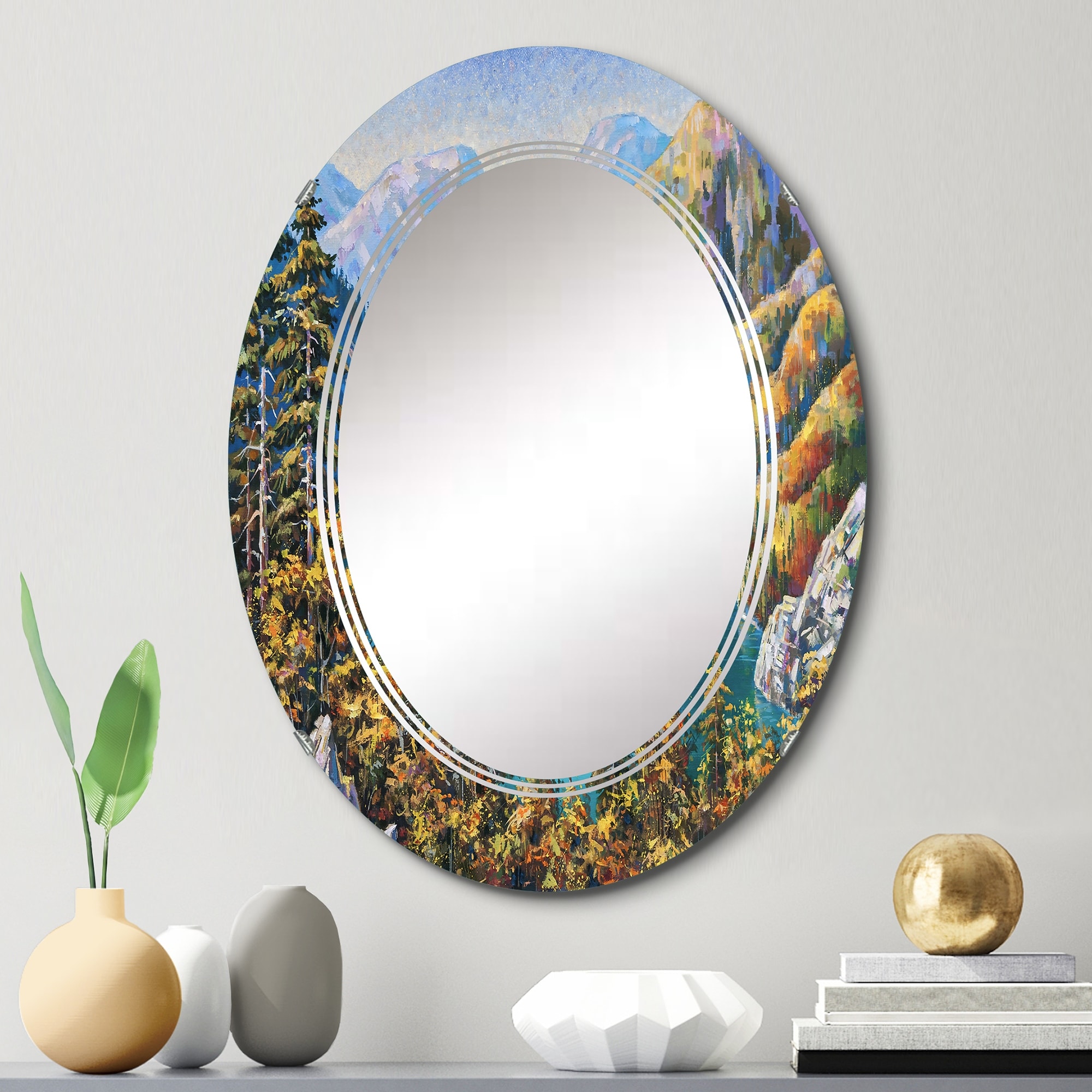 Designart 'Picturesque Lake Ritsa in Late Autumn' Printed Lake House Wall Mirror