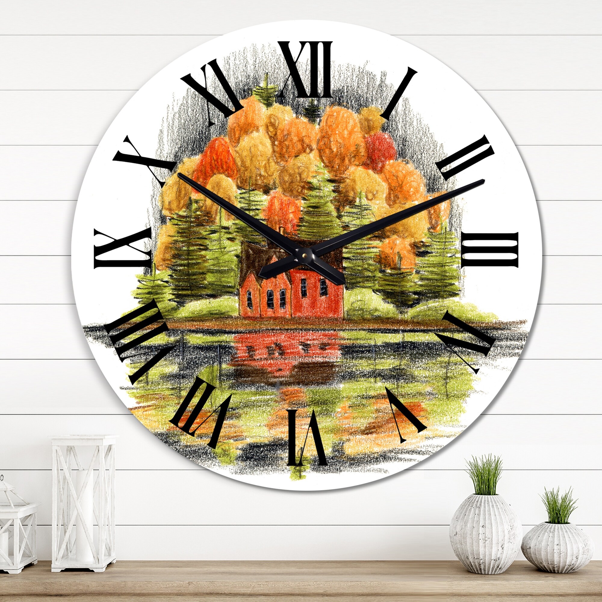Designart 'Autumn House With Trees Near Lake' Lake House wall clock