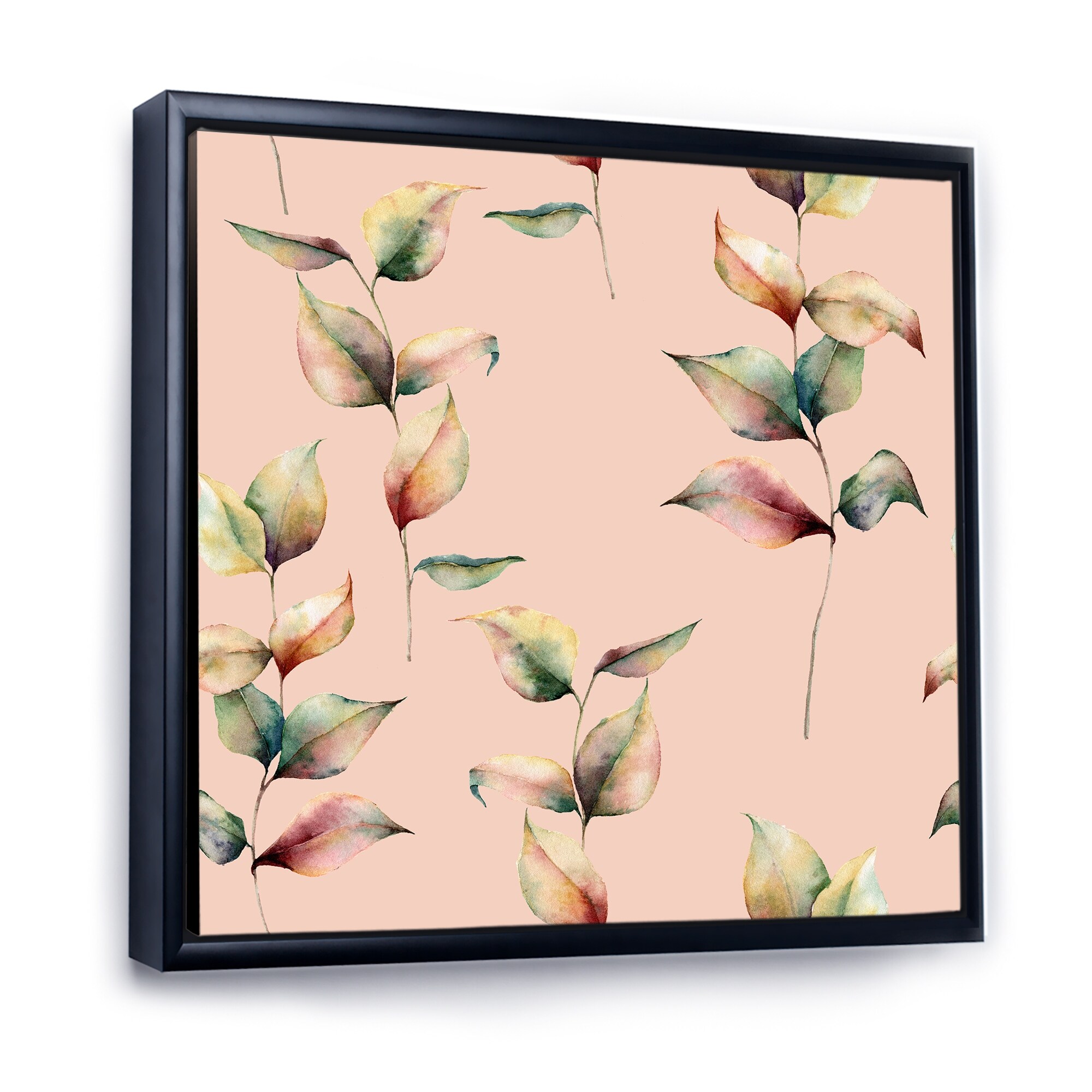 Designart "Autumn Pink Leaves and Branch on Pastel Colors" Traditional Framed Canvas Wall Art Print