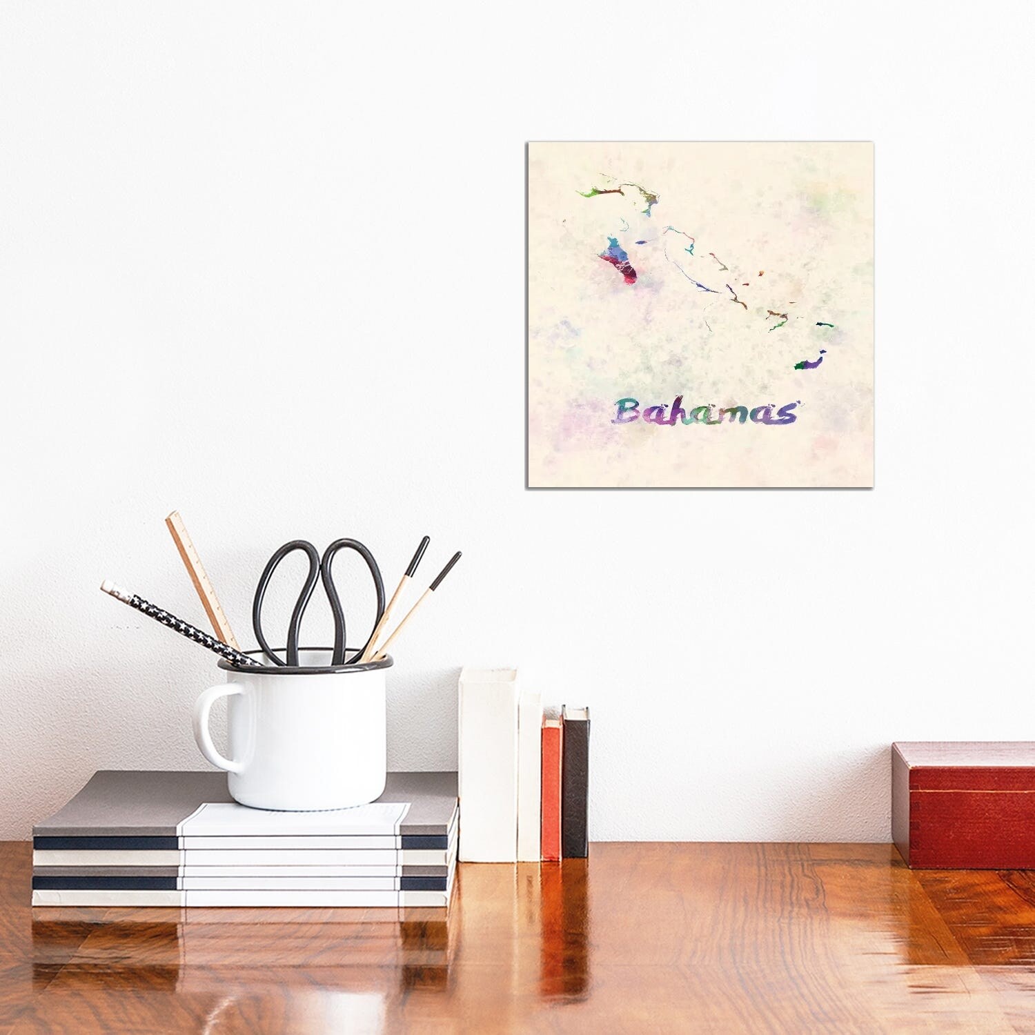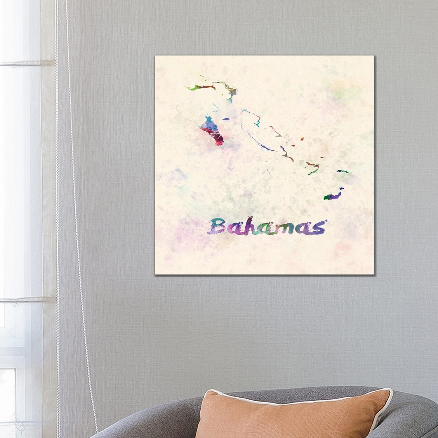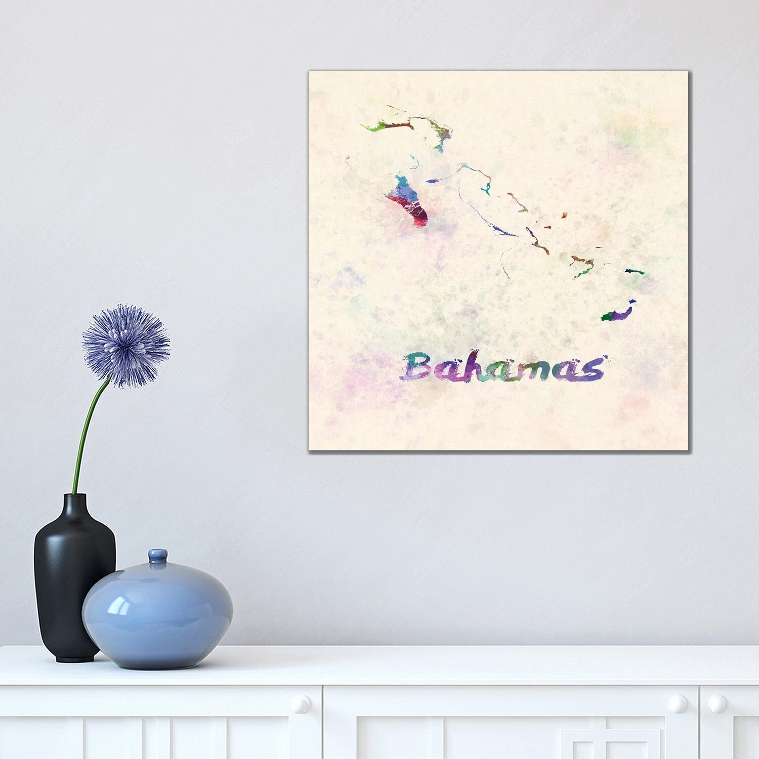 iCanvas "Bahamas Map in Watercolor" by Paul Rommer Canvas Print
