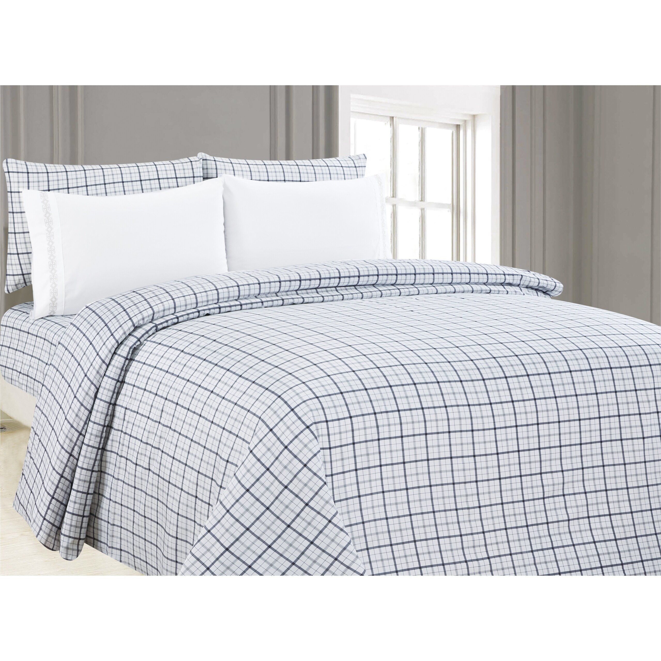 6-Piece Printed Sheet Set with Embroidered Pillowcases, Bank Plaid