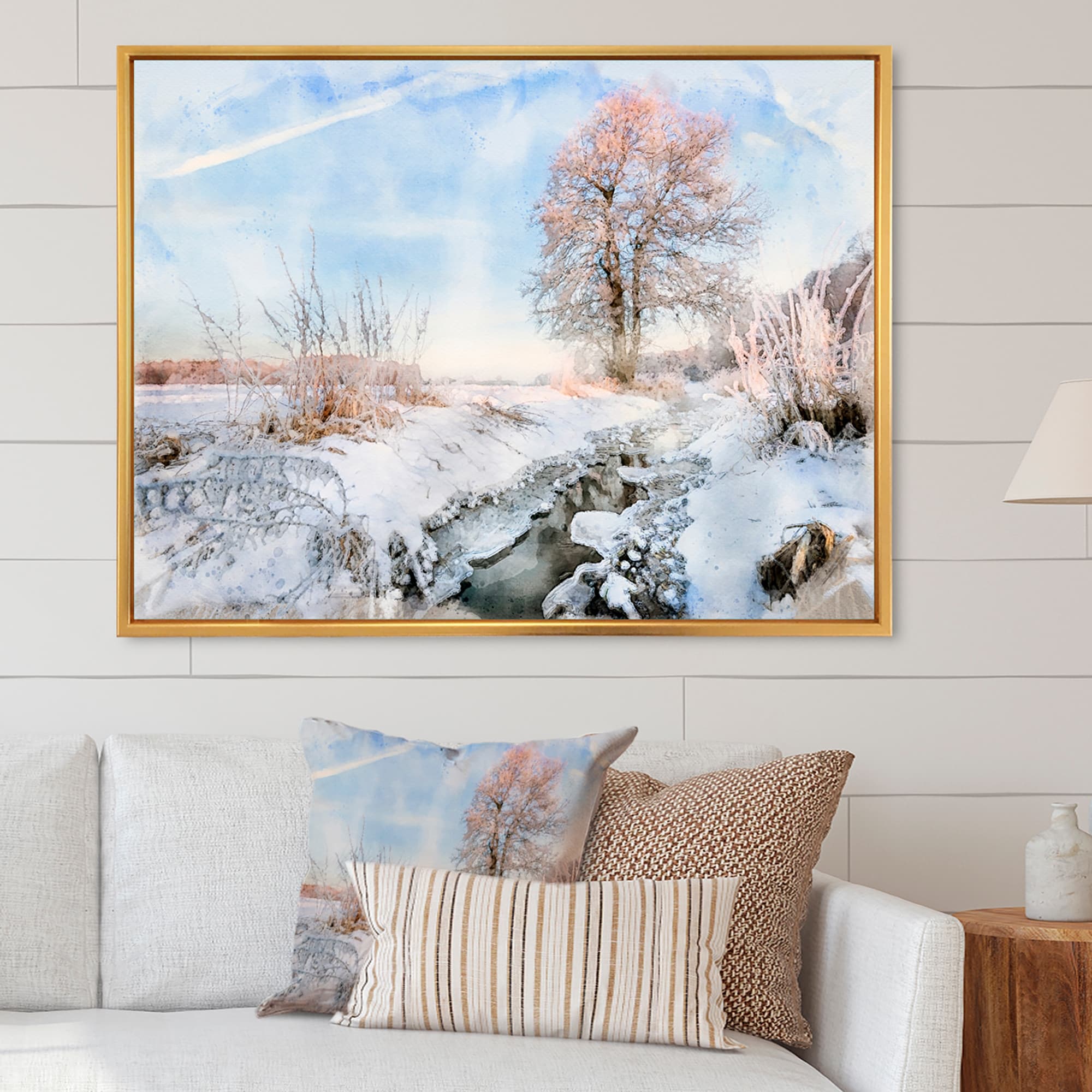 Designart "Winter Morning River Banks" Traditional Framed Canvas Wall Decor