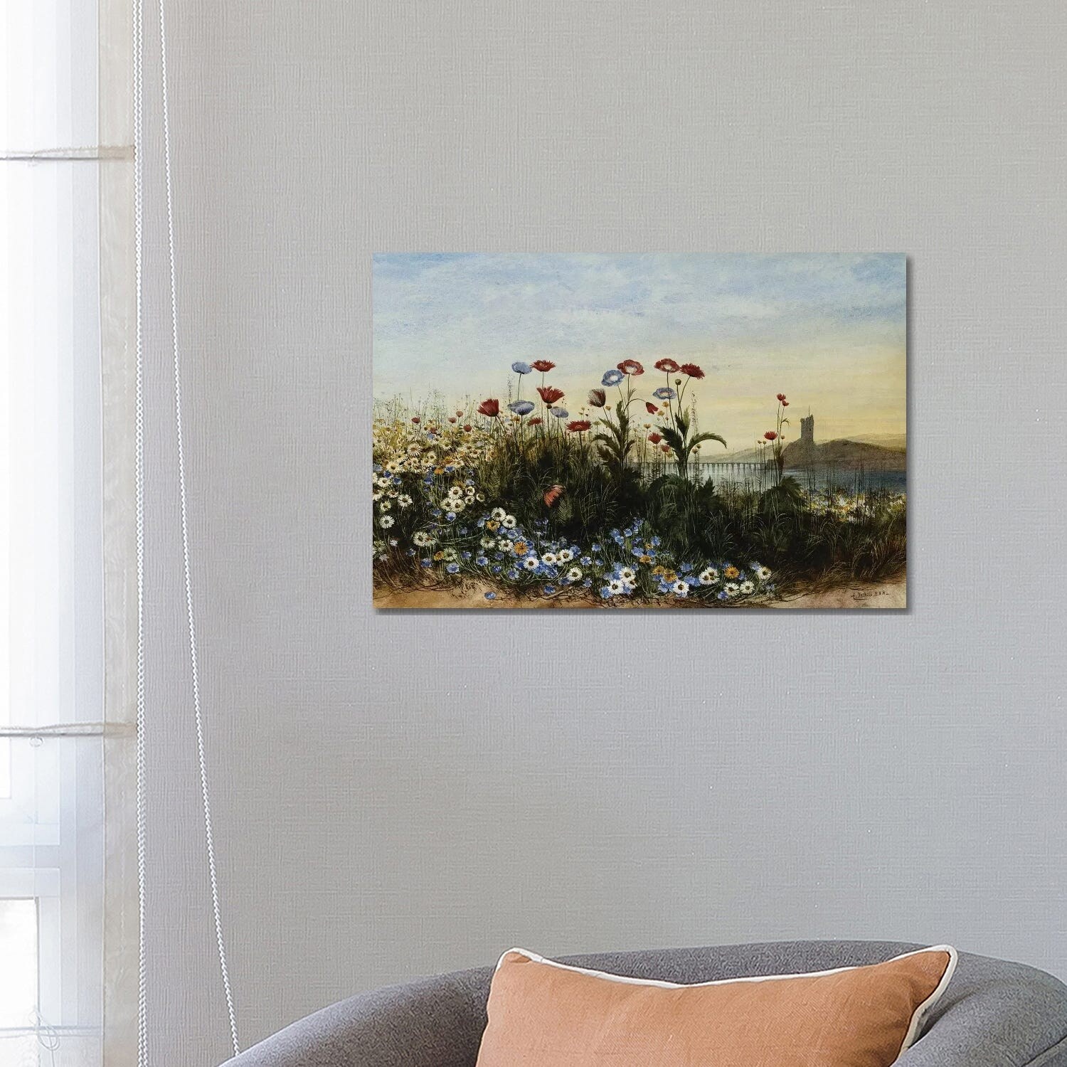 iCanvas "Ferry Carrig Castle, Co. Wexford, Seen Through a Bank of Wild Flowers, " by Andrew Nicholl Canvas Print