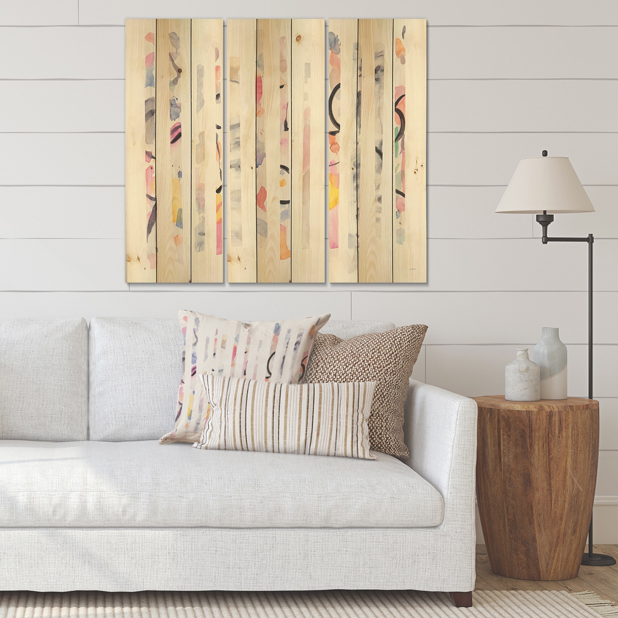 Designart 'Multi-Color Geometric Bars' Modern Transitional Print on Natural Pine Wood - 3 Panels