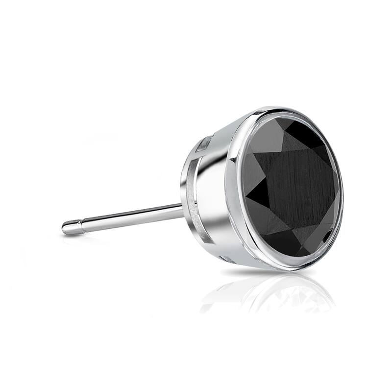 Auriya 1 1/2ctw Bezel-Set Round Black Diamond SINGLE (1) Stud Earring 14k Gold
